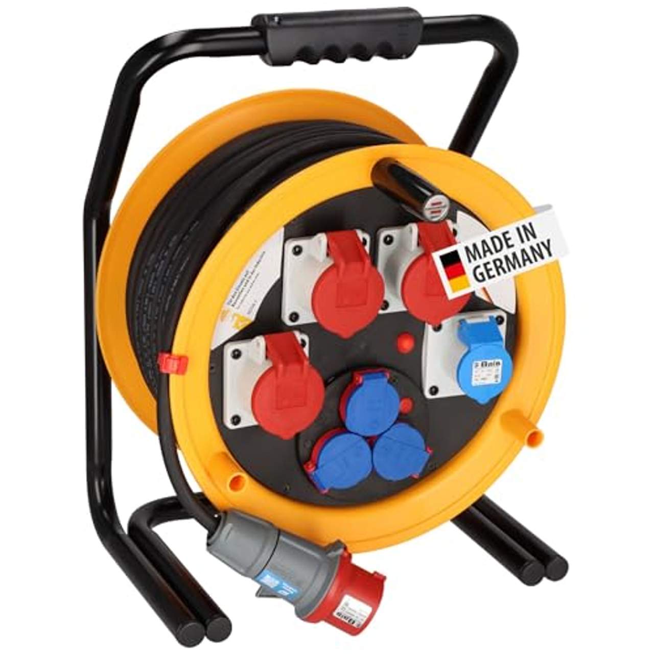 Brennenstuhl Professional Brobusta CEE 4 IP44 Gewerbe-Kabeltrommel auf besonders stabilem Tragegestell mit 40m RN-Kabel (H07RN-F 5G2,5) eignet sich ideal für den Baustelleneinsatz und den ständigen Einsatz im Freien, IP 44 Kabeltrommel mit CEE-Stecker (400 V/16 A), 3 CEE-Steckdosen (400 V/16 A), 1 CEE-Steckdose (230 V/16 A) und 3 spritzwassergeschützten Schutzkontakt-Steckdosen (230V) Kabeltrommel mit RN-Kabel ist für erschwerte Baubedingungen nach VDE 0100 Teil 704 zugelassen Kabeltrommel für Baustelle mit Klapp-Drehgriff und 3-poliger Sicherheitsabschaltung und Überhitzungsschutz Lieferumfang: 1x Brobusta CEE 4 IP44 Baustellen-Kabeltrommel mit 40m Kabellänge - in bester Qualität von brennenstuhl Die Brobusta Gewerbe-/Baustellen-Kabeltrommel mit 40m Kabellänge überzeugt durch ihre Qualität und Sicherheit in allen Bereichen. Die Kabeltrommel eignet sich ideal für den Baustelleneinsatz und den ständigen Einsatz im Freien. Das schwarze RN-Kabel ist zugelassen für erschwerte Baubedingungen nach VDE 0100 Teil 704.Die Kabeltrommel für die Baustelle überzeugt außerdem durch folgende Eigenschaften: CEE-Stecker 400 V/16 A 3 CEE-Steckdosen 400 V/16 A 1 CEE-Steckdose 230 V/16 A 3 spritzwassergeschützte Schutzkontakt-Steckdosen 230 V Kabelbezeichnung: H07RN-F 5G2,5