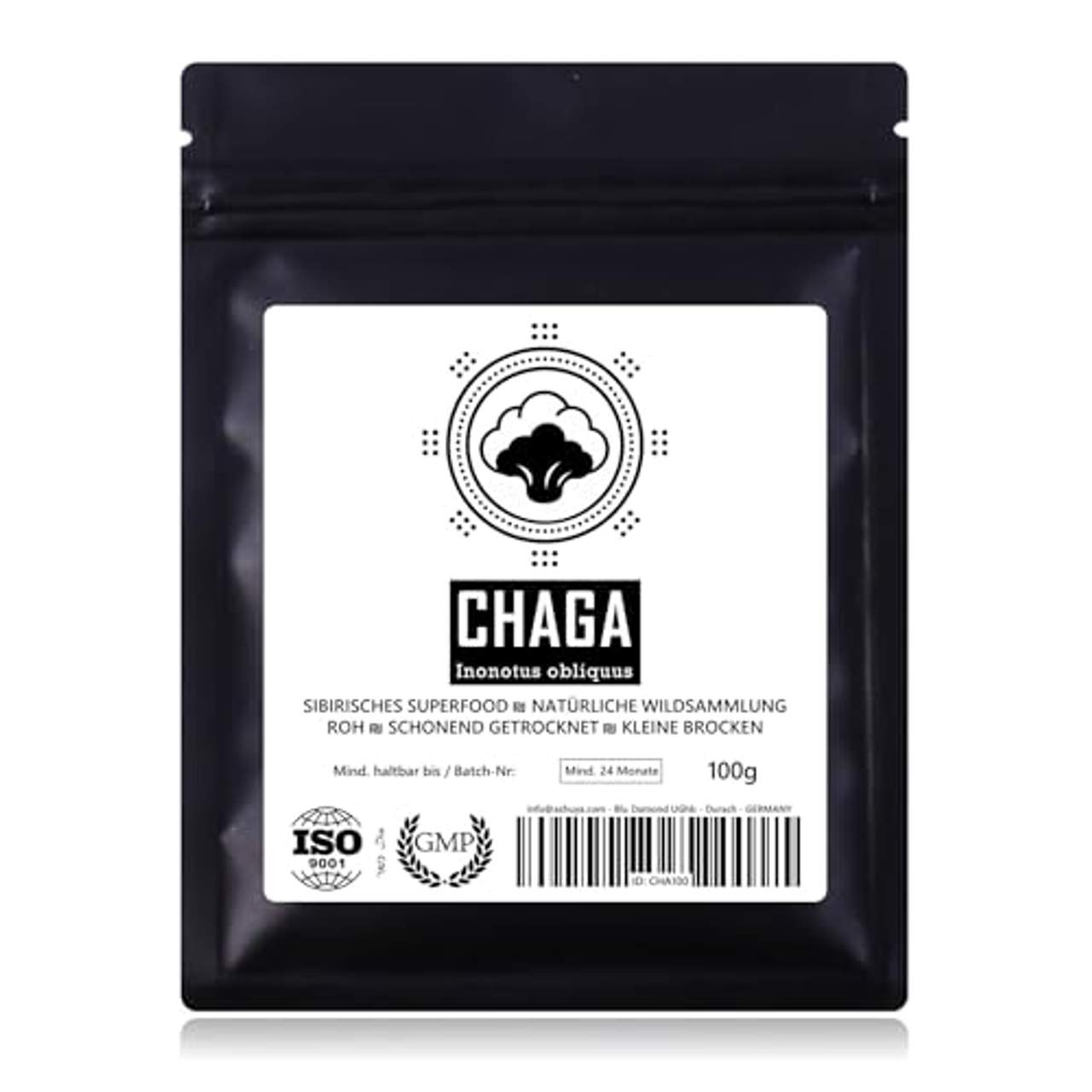 SIGMATIC-CHAGA Chaga ist ein 100g Superfood-Produkt mit einem hohen Gehalt an Antioxidantien. Er wird aus subarktischen Birkenwäldern wild geerntet und schonend zu kleinen Stücken getrocknet. Die Qualitätskontrolle wird durch die ISO-9001-Zertifizierung, Labortests auf Schadstoffe und eine Zufriedenheitsgarantie gewährleistet.