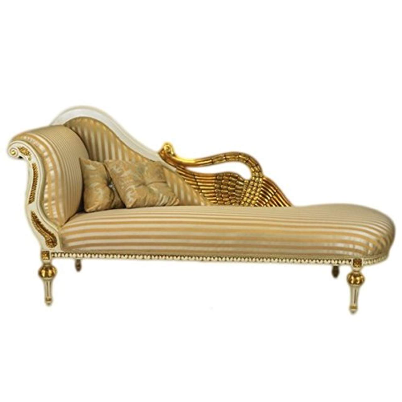 Casa Padrino Barock Chaiselongue Antik WeissCasa Padrino Barock Luxus Chaiselongue Antik Weiss / Gold - Golden Wings - Luxus Qualität