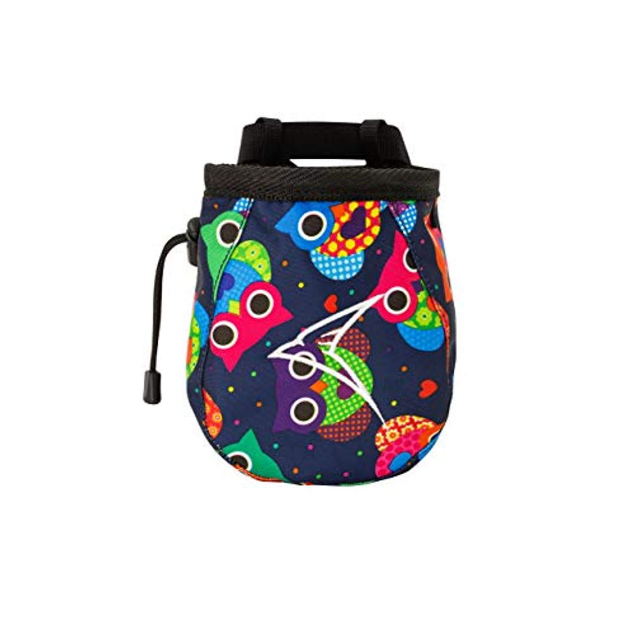 Der Café Kraft Chalkbag Eulen incl hat ein auffälliges Eulenmuster und ein K-Logo, was ihn zu einer stilvollen Ergänzung deiner Kletterausrüstung macht.