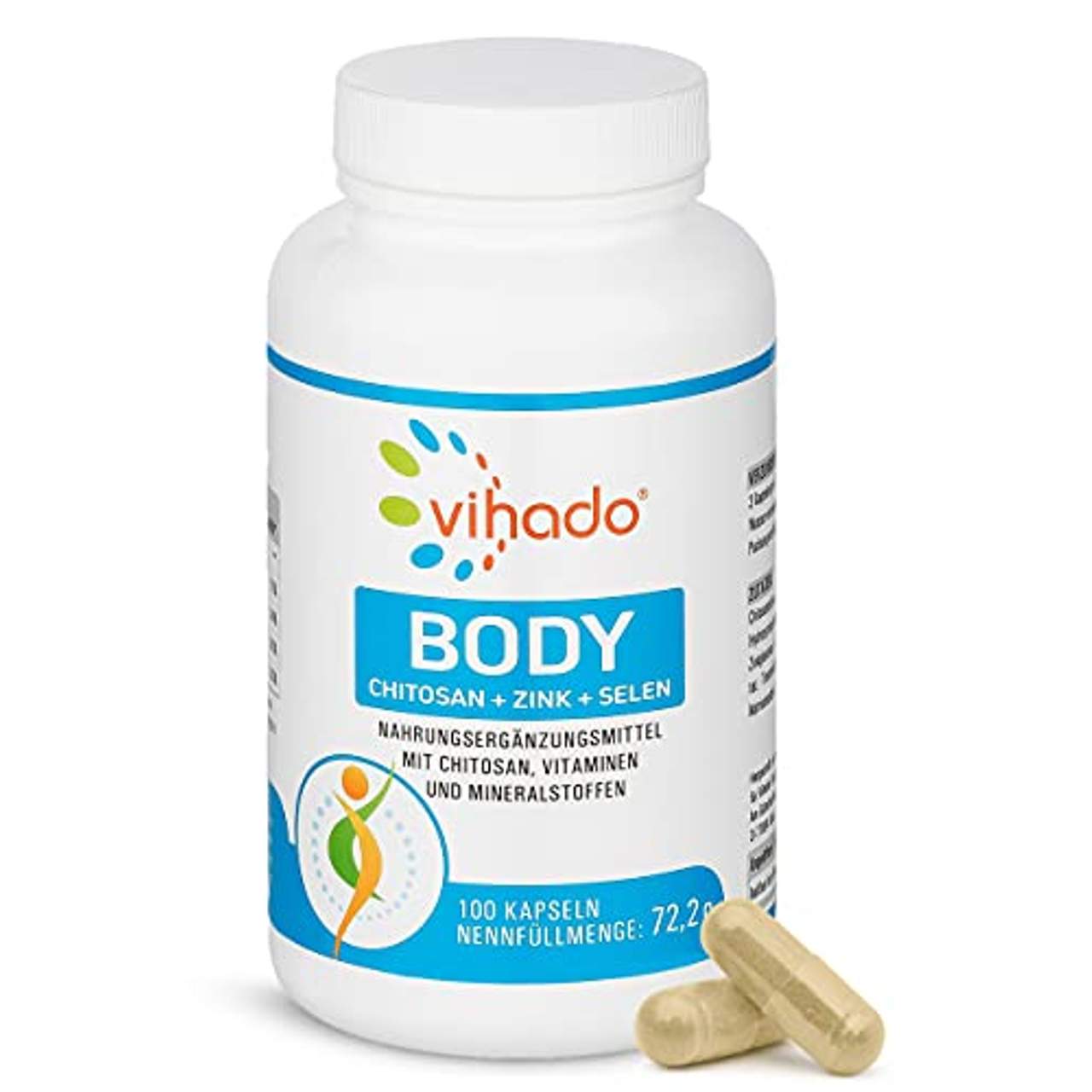 - Umfassende Versorgung: Sie erhalten eine Packung "Vihado" Body Nahrungsergänzungsmittel mit Chitosan, Vitaminen und Mineralstoffen, für einen normalen Stoffwechsel in 100 Kapseln (72,2 g).