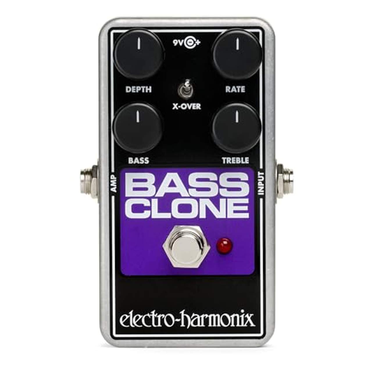Electro Harmonix 665243-Effekt E-BassChorus Effektpedal für E-Bass mit 2-Band KlangregelungMit dem Electro Harmonix Bass Clone stellt die New Yorker Effektschmiede einen Bass-Chorus, der perfekt auf die Bedürfnisse der Tieftöner unter uns abgestimmt wurde. So überzeugt das kompakte Pedal, dessen grundlegende Schaltung auf dem legendären EHX Small Clone basiert, mit einer harmonischen Modulation des Basssounds, deren Rate und Intensität über die bekannten Regler angepasst werden kann.Darüber hinaus bietet der EHX Bass Clone umfangreiche Möglichkeiten zur Klanganpassung, die für Bassisten von Vorteil sind. So können über den Crossover-Schalter (X-Over) die tiefen Frequenzen von der Modulation ausgenommen werden, sodass Definition und Druck des Bass-Signals erhalten bleiben.Darüber hinaus steht eine 2-Band Klangregelung bereit, deren Bassregler aussschließlich auf das trockene Signal wirkt, während der Höhenregler das Mixsignal bearbeitet.Der Electro Harmonix Bass Clone im Überblick:Chorus Effekt für E-BassCrossover Switch zur Bestimmung des Bassanteils in der Modulation2-Band KlangregelungRegler:Rate, Depth, Bass, TrebleTrue Bypass FußschalterStabiles MetallgehäuseMaße: ca. 70 x 115x x 54 mm (BxTxH)Betrieb mit 9V-Batterie oder optional erhältlichem NetzteilDer Electro Harmonix Bass Clone im Video