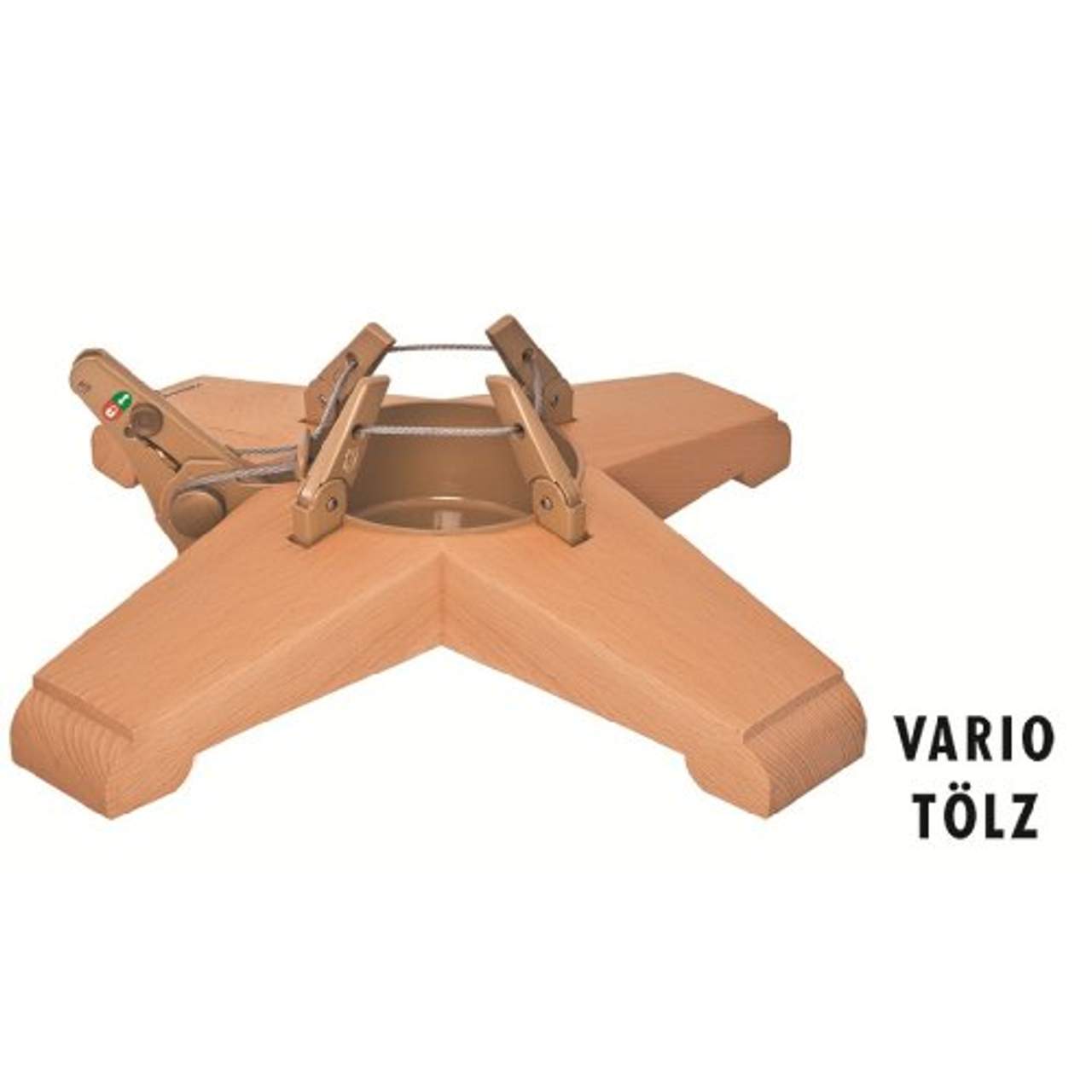 Der Krinner Christbaumständer Vario Tölz ist ein Christbaumständer der Marke „Krinner“. Er hat eine innovative Ein-Seil-Technik und ist aus Buchenholz gefertigt. Das Produkt ist für Bäume mit einer Höhe von bis zu 250 cm und einem Stammdurchmesser von 12 cm geeignet. Es hat einen kleinen integrierten Wassertank, ein hohes Gewicht und eine extra breite Basis, um Stabilität zu gewährleisten. Außerdem verfügt er über einen Sicherheitsgurt, der das Umkippen des Baumes verhindert.