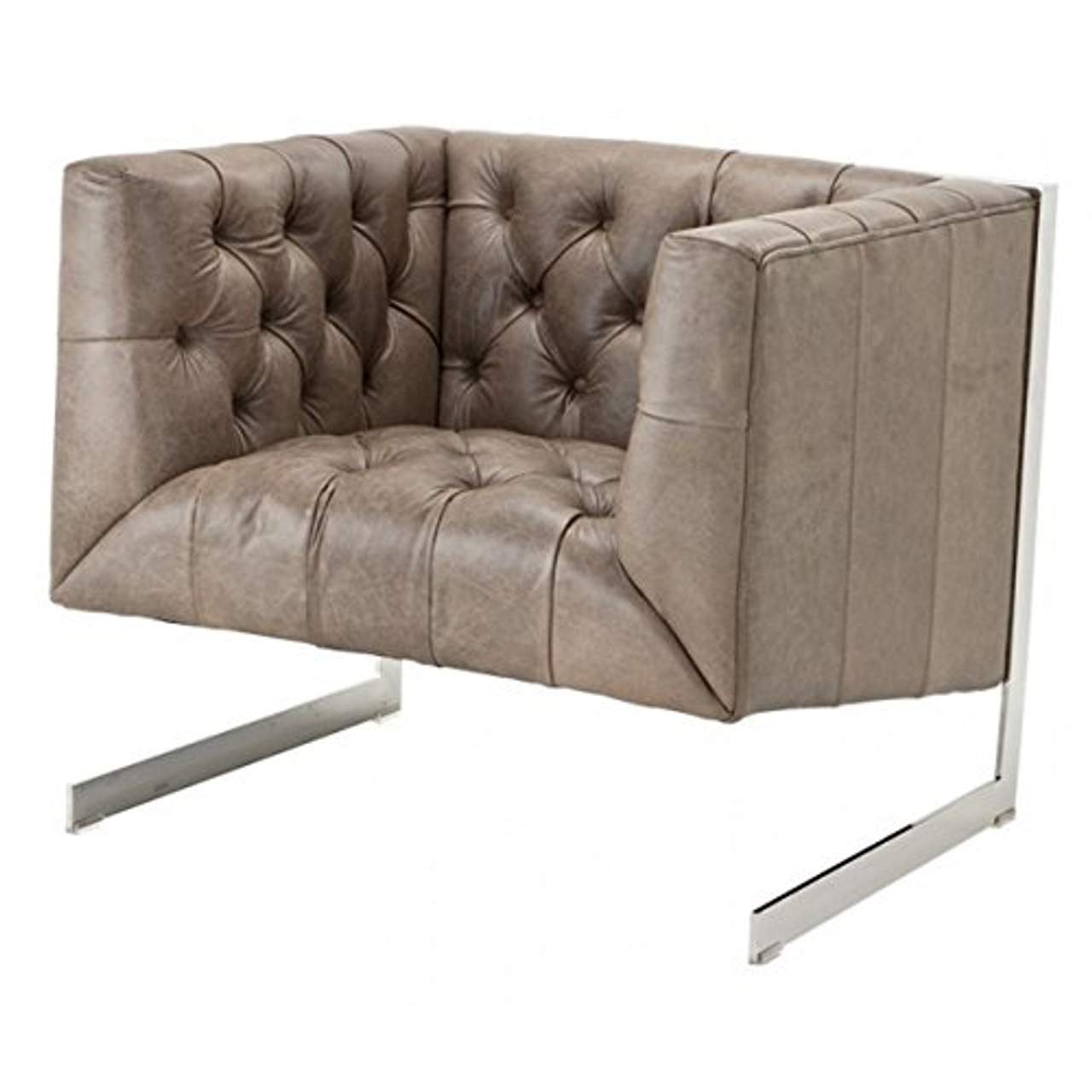 - Zeitloser Stil: Der Casa Padrino Chesterfield Luxury Genuine Leather Armchair Manhattan Vintage hat einen klassischen und zeitlosen Stil, der nie aus der Mode kommen wird. Das graue Leder und der Edelstahlrahmen verleihen ihm einen eleganten, raffinierten Look, der jedem Raum einen Hauch von Klasse verleiht.