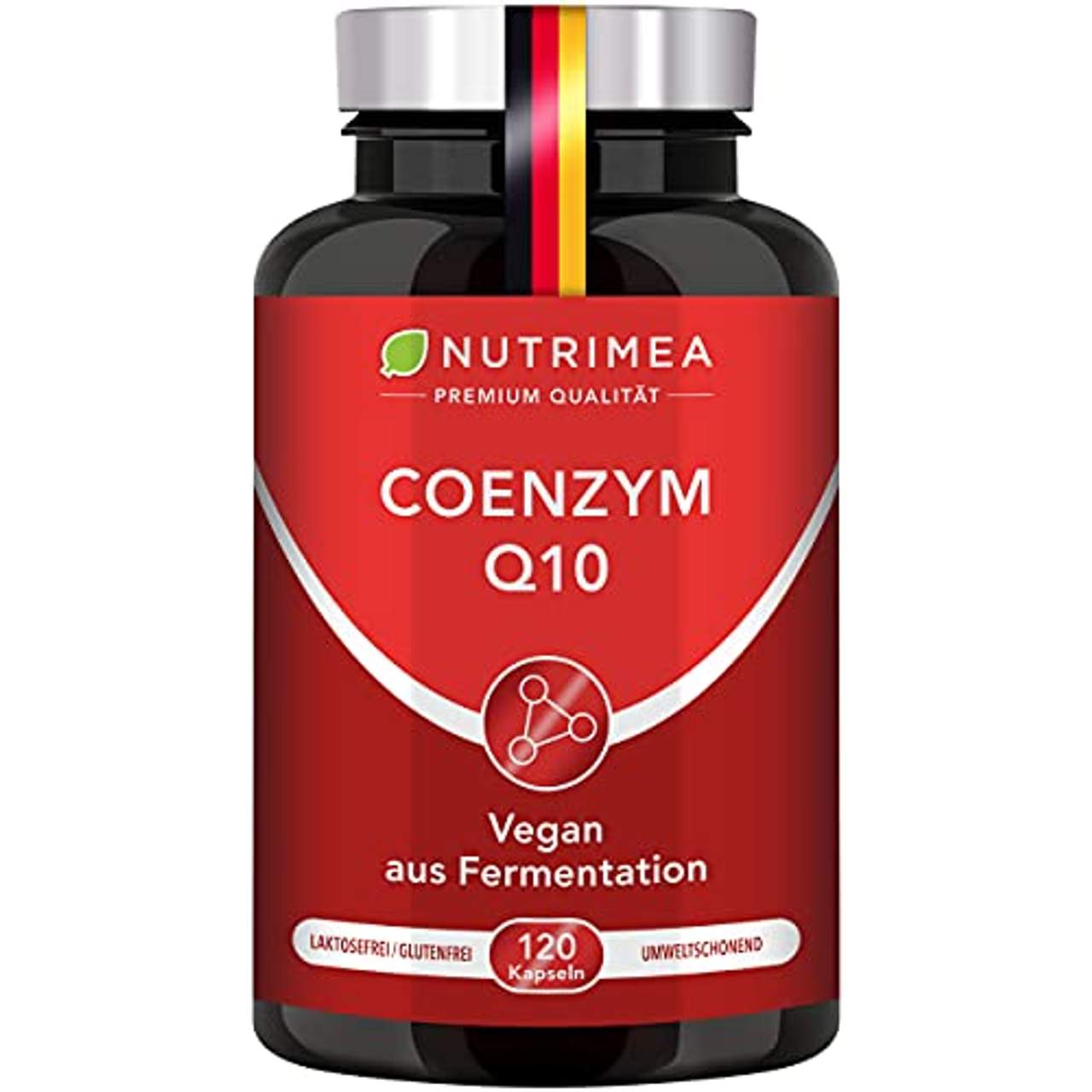 Premium Coenzym Q10 HochdosiertQ10 KAPSELN HOCHDOSIERT: Coenzym Q10 ist ausschlaggebend für die Energieproduktion. Freuen Sie sich über mehr Gesundheit, Kraft und Energie im Alltag! NATÜRLICHES COENZYM Q10 100% VEGAN: Ubiquinon ist ein natürlicher Wirkstoff. Ubiquinon wird durch pflanzliche Fermentation gewonnen und daher ist unser Coenzym Q10 frei von schädlichen; unerwünschten Zusatzstoffen.Neben Ubiquinon natürlichen Ursprungs, verwenden wir eine rein pflanzliche Kapselhülle; die aus natürlicher Cellulose besteht, womit unsere Coenzym Q10 Kapseln zu 100% vegan sind. PREMIUM QUALITÄT: Nutrimea steht für höchste Qualität. Unsere Coenzym Q10-Kapseln sind rein pflanzlich, ideal für Veganer sowie Vegetarier und garantiert ohne Magnesiumstearate.All unsere Produkte werden in Frankreich nach den anspruchsvollsten europäischen Fabrikationskriterien hergestellt: HACCP+. Sie sind gluten- und gentechnikfrei.