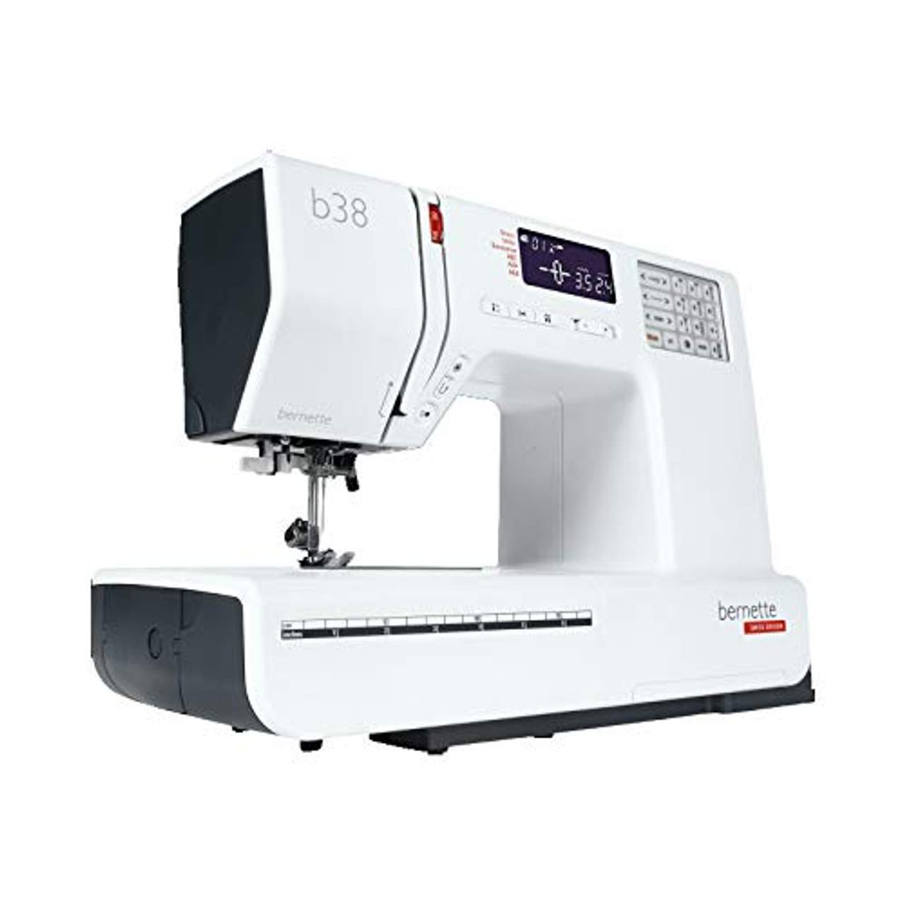 Bernette 38 Das günstige Topmodell der Bernette Nähmaschinen-SerieDie Bernette b38Das günstige Topmodell der bernette Nähmaschinen-Serie mit grossem FunktionsumfangDie bernette 38 ist das Topmodell der bernette Serie. Diese Computer-Nähmaschine bietet einen grossen Funktionsumfang und ist günstig im Preis – da bleiben keine Wünsche offen. Sie verfügt über 394 verschiedene Stiche, darunter auch Stretchstiche für dehnbare Stoffe. Damit kannst Du zum Beispiel tolle T-Shirts aus Jersey zaubern. Ausserdem hat die bernette 38 acht verschiedene, einstufige Knopflöcher und drei Alphabete.Zudem besitzt sie einen Speicher, mit dem Du verschiedene Kombinationen von Mustern speichern kannst und ihn nach einer Nähpause sofort griffbereit hast. Möchtest Du gerne die Geschwindigkeit beim Nähen anpassen können? Kein Problem! Die bernette 38 hat einen praktischen Geschwindigkeitsregler, der per Display eingestellt werden kann.Als Top-Modell überzeugt diese Nähmaschine ausserdem mit einem hellen LED-Nählicht, einem Einfädler und einem automatischen sowie manuellen Fadenabschneider. Die bernette 38 kommt ausserdem mit acht verschiedenen Nähfüssen (Sohlen) und einem grossen Anschiebetisch im Standardpaket.Die Highlights auf einen BlickAutomatischer FadenabschneiderVerstellbarer Nähfussdruck394 Stiche insgesamt, darunter 67 Zierstiche und 8 KnopflöcherDrei AlphabeteSpeicherfunktion für StichkombinationenAnschiebetisch inklusiveHardcover inklusive8 ZubehörfüsseTechnische DatenBauart: computergesteuertStichbreite: 7mmGreifersystem: Drop-inPlatz rechts neben der Nadel: 170mmStichmuster: 394Knopflöcher: 8Geschwindigkeit (Stiche/Min.): 820Das zeichnet die Bernette b38 ausAutomatische Limitierung der ZwillingsnadelWenn Du von einer einfachen Nadel zu einer Zwillingsnadel wechselst, hilft Dir die Zwillingsnadel-Taste“ dabei, Deine Nadel