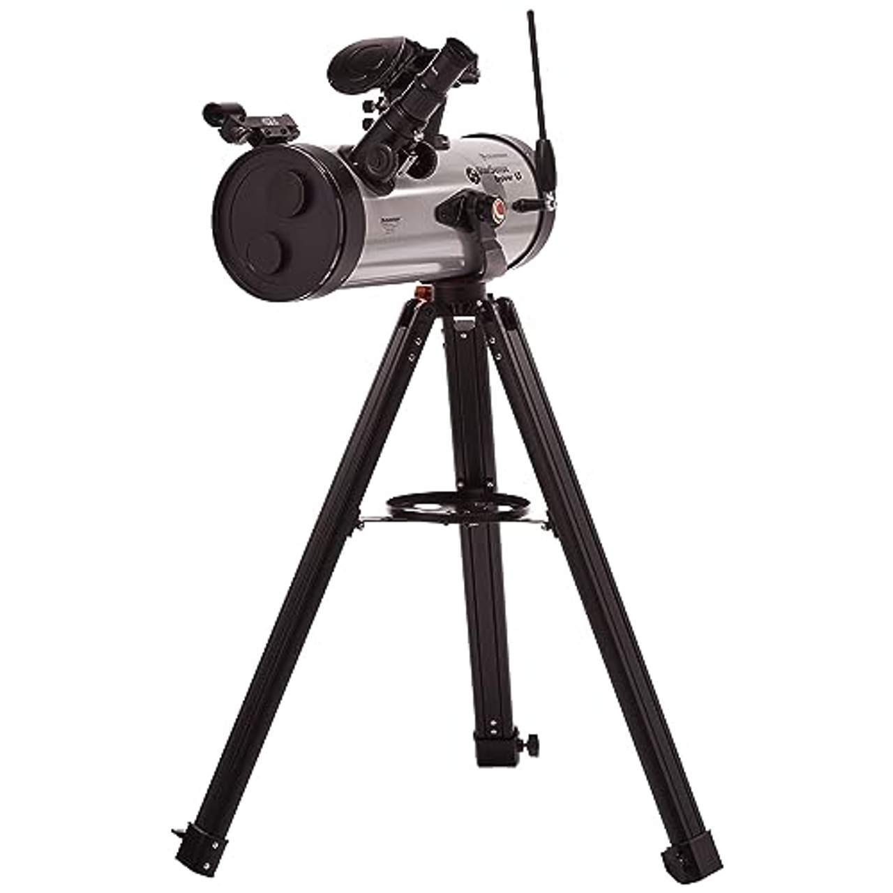 - Vormontiertes Stativ: Das Teleskop wird mit einem Aluminiumstativ geliefert, das bereits vormontiert ist und somit schnell und einfach aufgebaut werden kann. Außerdem verfügt es über ein Zubehörfach zur Aufbewahrung zusätzlicher Gegenstände.
