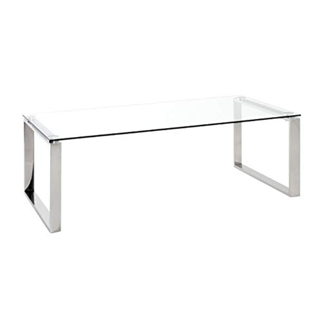 - Auffälliger Look: Der Edelstahlrahmen in Kombination mit der transparenten Glasplatte sorgt für einen auffälligen Look, der in jedem Raum ins Auge sticht.