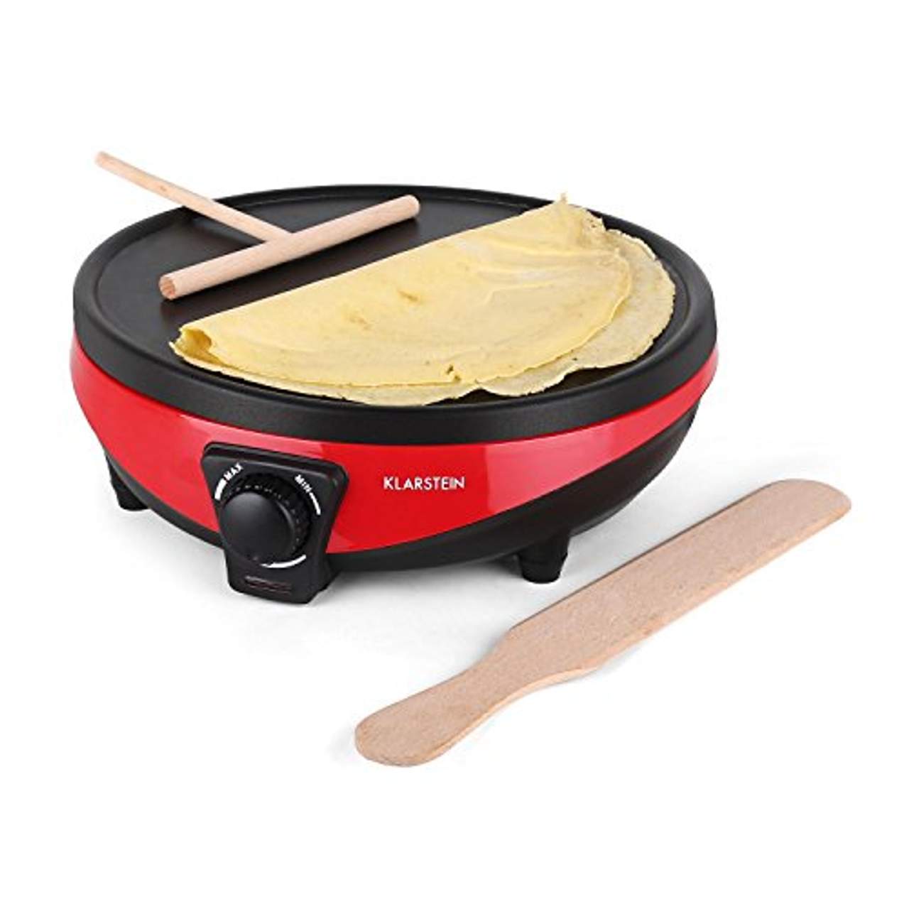 Watt Leistung.Antihaftbeschichtete Heizplatte mit 30cm Durchmesser.Inklusive Teigrechen und Teigwendemesser (Palette) aus Buchenholz.Mit dem Klarstein Madame&Monsieur Crepemaker kommt der