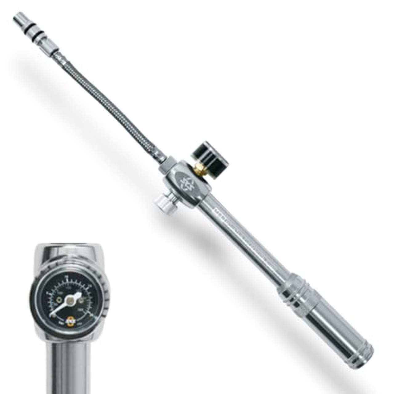 - Druckregulierung: Der integrierte Drehknopf zur Druckreduzierung bietet die Möglichkeit, das Feder-Dämpfer-Element optimal einzustellen. Dies erleichtert die Anpassung des Reifendrucks an Ihre Bedürfnisse und sorgt dafür, dass Ihre Reifen immer richtig und sicher aufgepumpt sind.