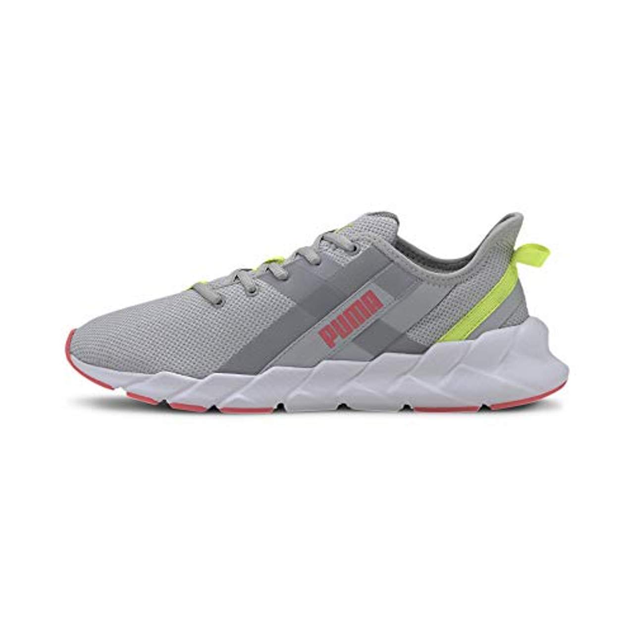 Puma Damen Weave XT Wn's LaufschuhPUMA WEAVE XT. Fitnessschuhe aus nahezu nahtlosem und atmungsaktivem Mesh; optimierte Zungenkonstruktion für mehr Bewegungsfreiheit; klassische Schnürung mit Metallösen; Zuglasche zum leichteren An- und Ausziehen; dämpfende Zwischensohle mit Flechtmuster; zusätzlich dämpfende Einlegesohle aus Soaft-Foam; gepolsterter Fersenbereich; Obermaterial und Innensohle aus Textil; abriebfeste Außensohle.