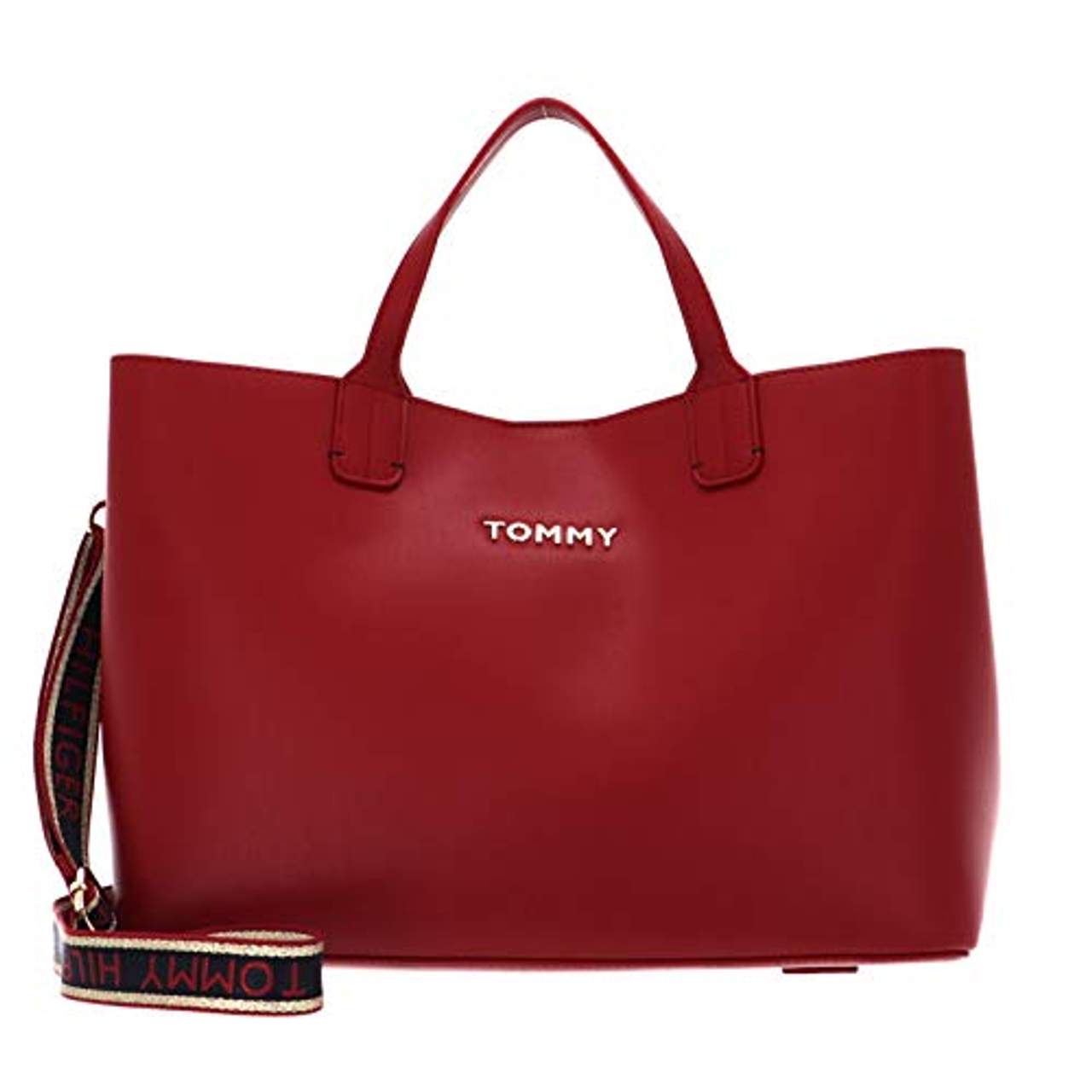 Tommy Hilfiger Damen Iconic Tommy Satchel TaschenIconic Tommy Satchel FA20, den edlen Shopper der renommierten Qualitätsmarke Tommy Hilfiger, sollten Sie sich unter keinen Umständen entgehen lassen. Freuen Sie sich auf eine verführerisch elegante Op tik und genießen Sie das großzügige Raumangebot. Hier finden sogar A4-Unterlagen komfortabel Platz.Und das Beste: Dank dem absolut zeitlosen Design lässt sich diese feine Handtasche ganz leicht mit u nterschiedlichsten Outfits und Garderobenstilen kombinieren. So ist Ihnen in jeder Situation ein sty lisher Look sicher! Ausstattung: zeitloser Shopper von Tommy Hilfiger aus pflegeleichtem, glattem Kunstleder schicker Begleiter im Alltag geräumiges, unterteiltes Hauptfach, passend für A4-Unterlagen, schließt mit Magnetknopf ein Reißverschlussfach unterteilt das Hauptfach 2 Tragegriffe verstellbarer, abnehmbarer Schultergurt (Länge: 62-107 cm) stabiler Stand und verstärkter Taschenboden Daten: Maße: 34 x 24 x 17 cm (BxHxT) Gewicht: 720 g Material: glattes, pflegeleichtes Kunstleder (Polyurethan): innen: Kunstleder