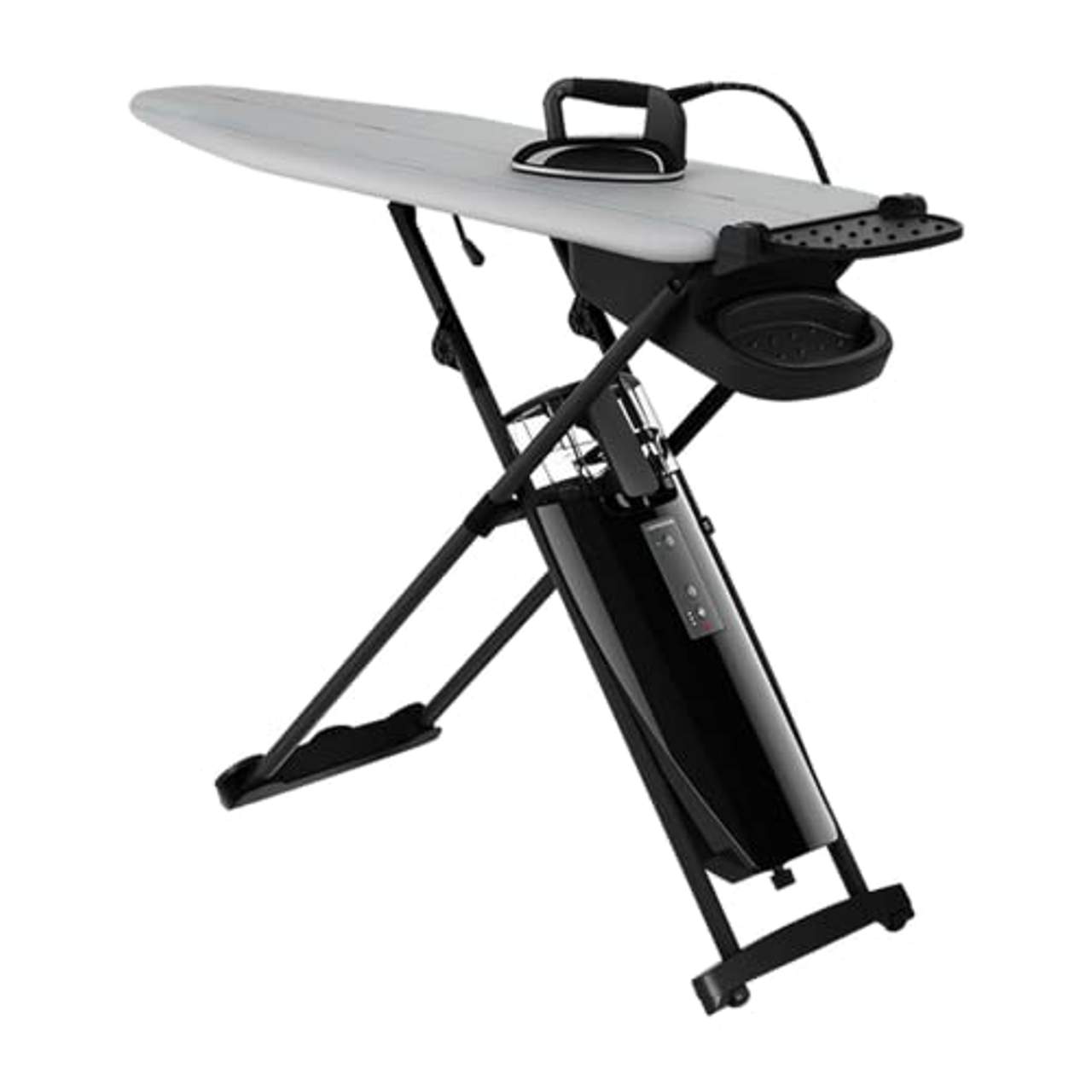 Vermeide unerwünschte Falten: Der aktive Bügeltisch mit Gebläse verhindert unerwünschte Falten, während das Laurastar-Bügeleisen mit 3D-Sohle sie ganz vermeidet.