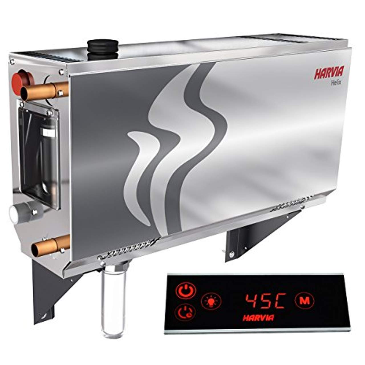 - Einfach zu installieren: Der Harvia Helix HGX-Dampfgenerator ist dank seines kompakten Designs einfach zu installieren und findet selbst in den niedrigsten Räumen Platz.