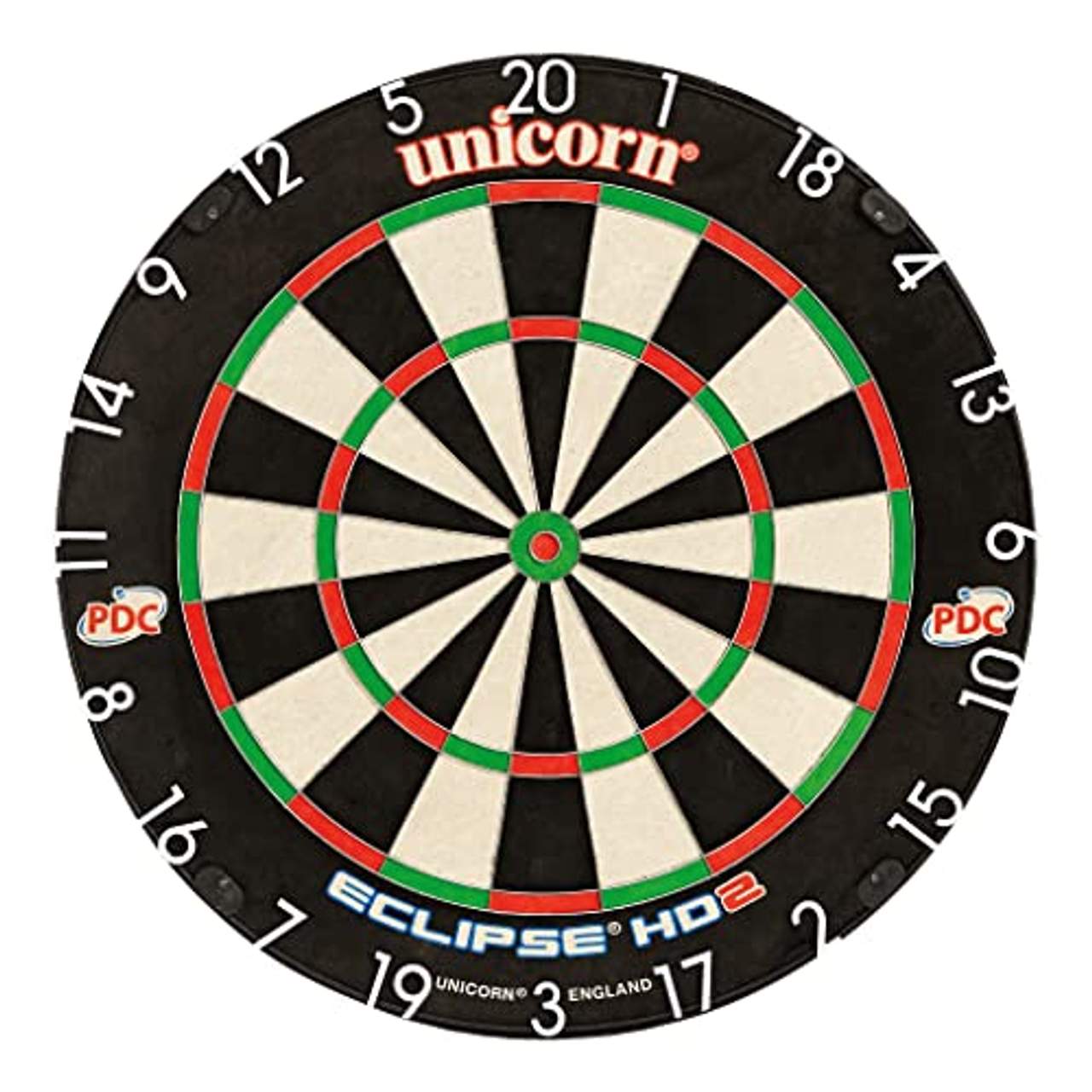 Unicorn Eclipse HD2Das Eclipse HD2 Dartboard von Unicorn ist für Ihr nächstes Match vorbereitet und bietet eine nahtlose Spieloberfläche, Turnierregulierungssegmente und eine klammerfreie Konstruktion. Das Ultra-Slim-Wire-Design und der schlankere Bullaugendraht erhÃhen die Spielfläche um 14%.