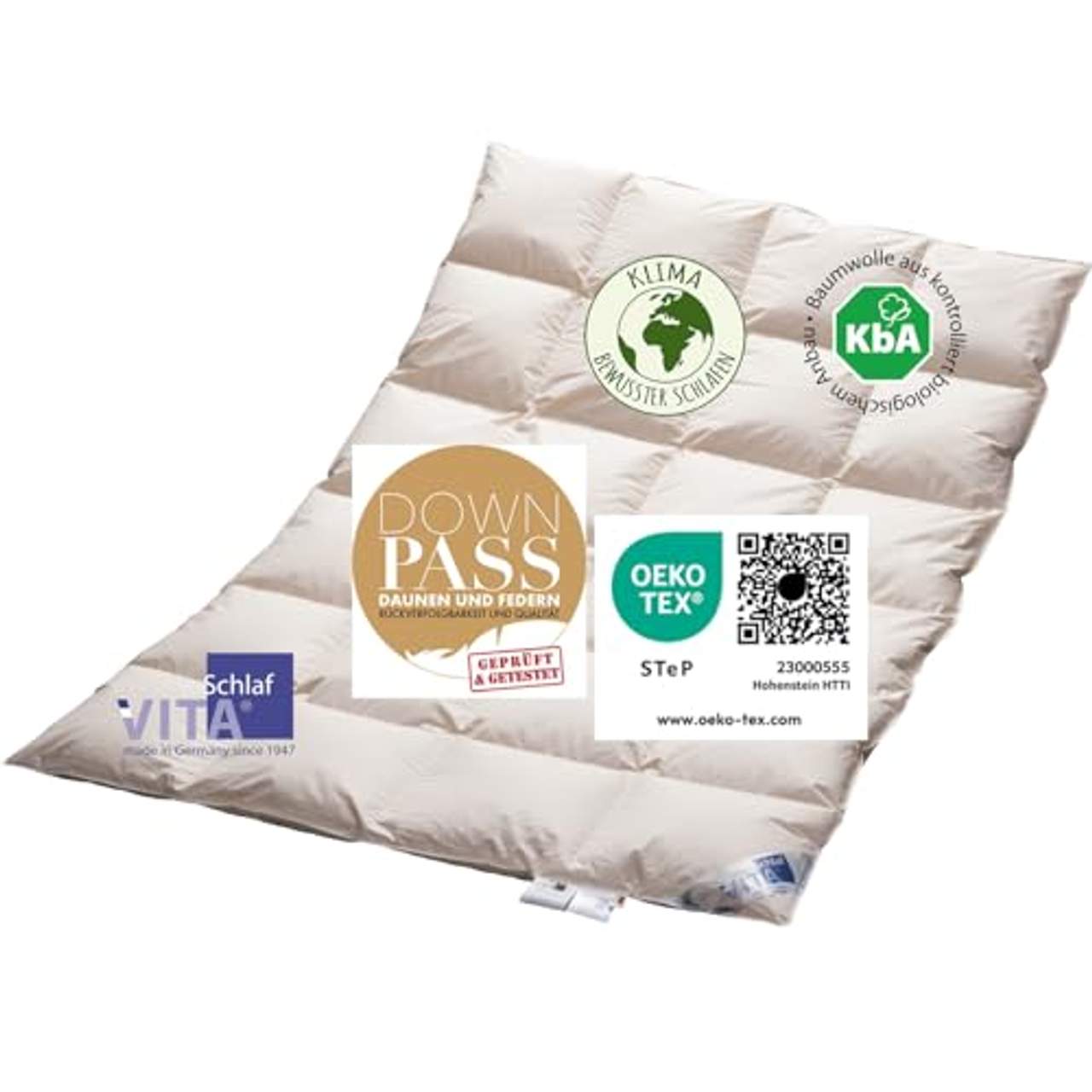 - Allergie-Missverständnis: Die VitaSchlaf BIO Luxe KBA Daunendecke wurde von NOMITE, DAUNAFRESH GREEN LINE, Ökotexstandard 100 der Klasse 1 und Traumpass geprüft und zertifiziert und ist somit für Hausstaubmilbenallergiker geeignet.