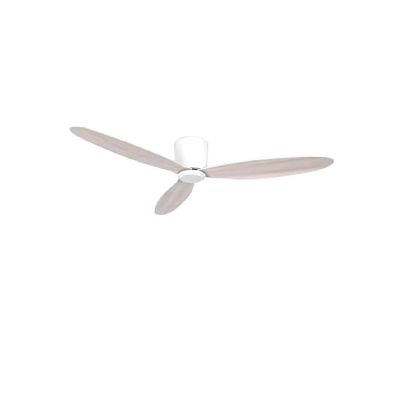 - Leichte Materialien: Das Gehäuse um den leistungsstarken Gleichstrommotor ist aus leichtem Kunststoff gefertigt, während die drei Flügel aus sehr leichtem Holz bestehen, das in der Farbe White Oak lackiert wurde. Dadurch ist der Ventilator einfach zu installieren und zu warten und bietet dennoch eine hervorragende Leistung und Haltbarkeit.