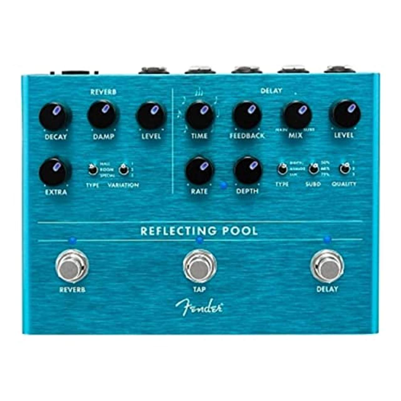 Fender »REFLECTING POOL« DelayUmfangreicher Delay/Reverb-Effekt mit Tap Tempo FunktionLeistungsstarker DSPSeparate Delay- und Reverb-Sektionen3 Reverb Modes Hall, Room und Special mit jeweils 3 VariationenReverb-Regler für Decay, Damp, Level und Extra3 Decay Modes Digital, Analog und Tape mit jeweils 3 Quality-SettingsDecay-Regler für Time, Feedback, Mix, Level, Rate und DepthTap Tempo FußschalterEin- und Ausgänge im Stereo-FormatBetrieb per optional erhältlichem 9V NetzteilFender Reflecting Pool im ÜberblickDas Fender Reflecting Pool präsentiert sich als äußerst umfangreiche Schaltzentrale für klassische Delay- und Reverb-Effekte.Das mit einem leistungsstarken DSP bestückte Pedal unterteilt sich in eine Reverb- und eine Delay-Sektion und bietet jeweils drei verschiedene Effekttypen mit drei zusätzlichen Variationen. An Hall-Sounds stehen mit den Modes Hall, Room und Special neben klassischen Reverb-Effekten auch experimentelle Raumsounds zur Verfügung, während der Delay-Effekt entweder digital, analog oder in klassischer Tape-Echo-Manier erklingt und drei verschiedene Qualitätsstufen bereitstellt.Zusätzlich können die zeitlichen Intervalle des Delay-Effekts intuitiv per Tap Tempo Fußschalter und den darauf folgenden Time-Regler und Subdivision-Switch eingestellt werden, wodurch auch rhythmisch pulsierende Klanglandschaften vom Reflecting Pool problemlos abgedeckt werden. Für Einsätze in umfangreichen Stereo-Setups und für Aufnahmezwecke verfügt das Reflecting Pool darüber hinaus über Ein- und Ausgänge im Stereo-Format, um die erzeugten Klänge authentisch im Stereo-Raum darzustellen.