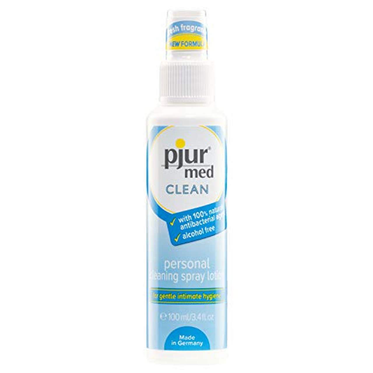 pjur med Clean HygienesprayZur schonenden, hygienischen Reinigung des Intimbereichs und von Gebrauchsgegenständen - alkoholempfindliche Materialien, wie Latex, Gummi und Silikon werden nicht angegriffen! Reduziert Körpergerüche und wirkt prophylaktisch gegen Bakterien und Pilze. *Bei der Reinigung von Gebrauchsgegenständen wirkt pjur med Clean auch begrenzt viruzid gegen lipohile, behüllte Viren. pjur med Clean ist ausschließlich zur äußerlichen Anwendung vorgesehen und ersetzt nicht die Verwendung von Kondomen. Speziell auch für die pflegende Anwendung auf sensibler Haut (Schleimhaut) geeignet.Dermatologisch getestet, geschmacks- und geruchsneutral. Anwendung: Direkt auf die zu reinigende Hautpartie oder den Gegenstand sprühen und ggf. abwischen. 100-ml-Sprühflasche._x000D_ _x000D_ Zutaten: aqua, phenoxyethanol, cocamidopropyl betaine, chlorhexidine, digluconate, Peg-7 glyceryl cocoate, dimethicone copolyol, neohesperidine, sorbitol