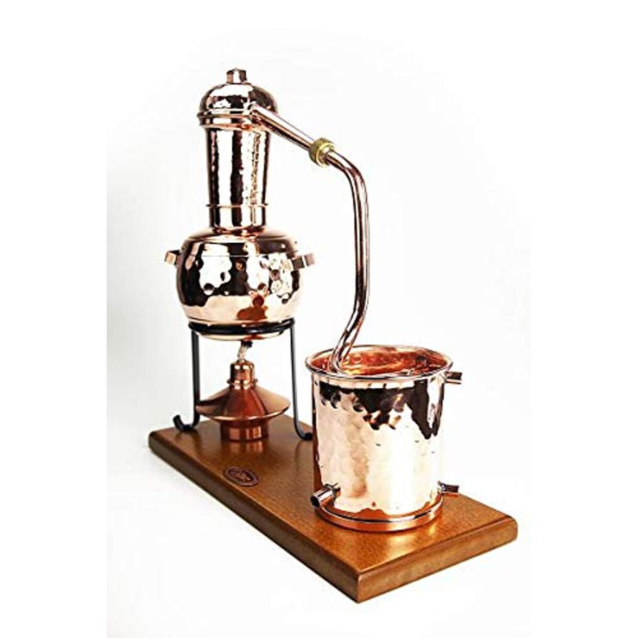- Handgeschmiedetes Kupfer: Die CopperGarden Kupfer Destille Arabia 0,5 Liter wird mit viel Liebe zum Detail aus handgeschmiedetem Kupfer hergestellt. Dieses Material verleiht ihr nicht nur Eleganz und Charme, sondern dient auch praktischen Zwecken beim Destillationsprozess. Kupfer ist bekannt für seine hervorragende Wärmeleitfähigkeit, die eine effiziente und präzise Temperaturkontrolle während der Destillation ermöglicht. Außerdem sorgt der fest verschraubte Destillationsapparat für Stabilität und Langlebigkeit, was ihn zu einem zuverlässigen Werkzeug macht, das wiederholt verwendet werden kann, ohne dass die Leistung beeinträchtigt wird.