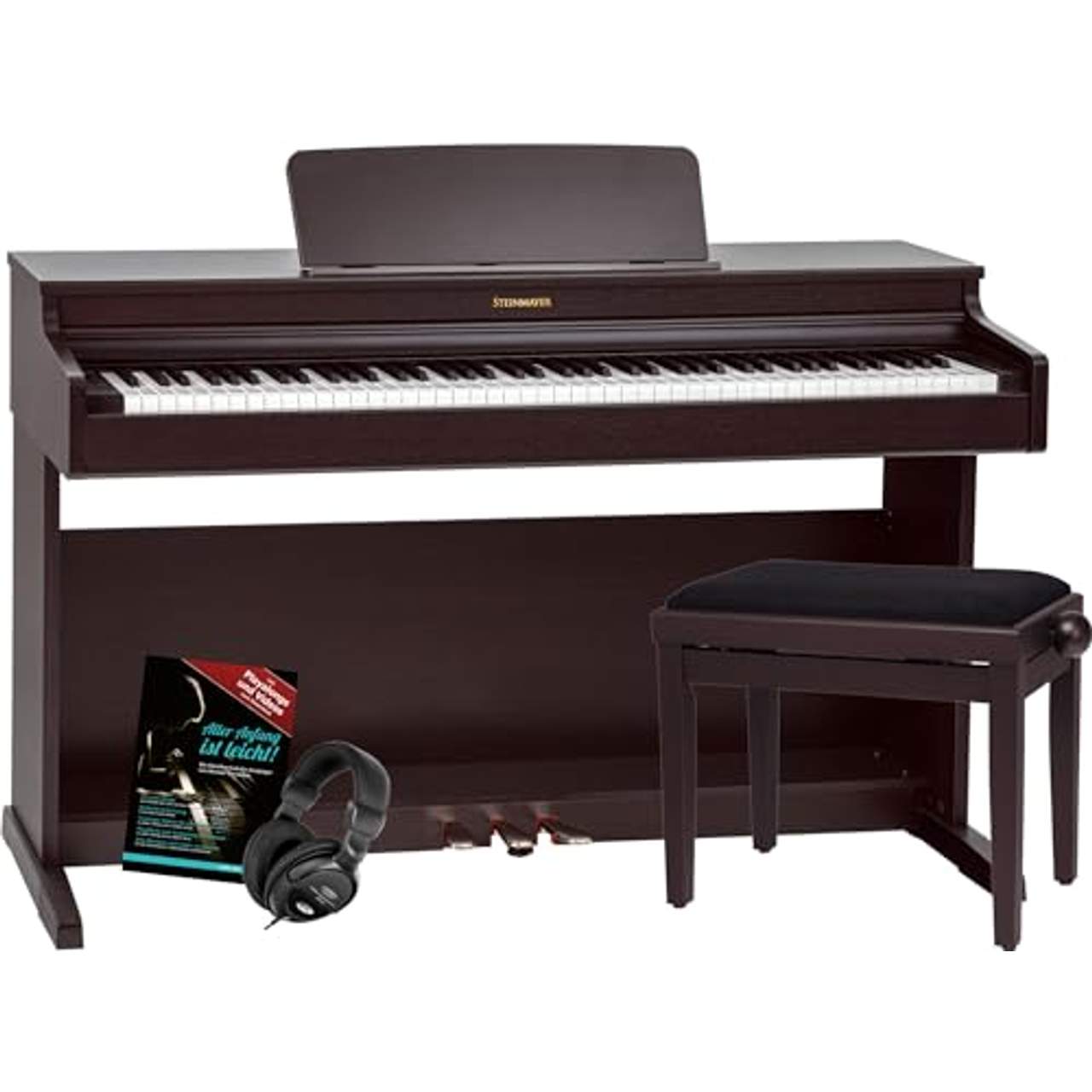 Steinmayer DP-321 RW Digitalpiano88 Tasten mit Hammergewichtung und Ebony/Ivory Feel, Max. Polyphonie: 256, Saiten- und Dämpferresonanzsimulation, 3 Pedale plus Halbdämpfer-Funktion, Split, Twin Piano, Metronom u.v.m., Bluetooth Audio/MIDI, Spar-Set inkl. Klavierbank, Kopfhörer & Schule,