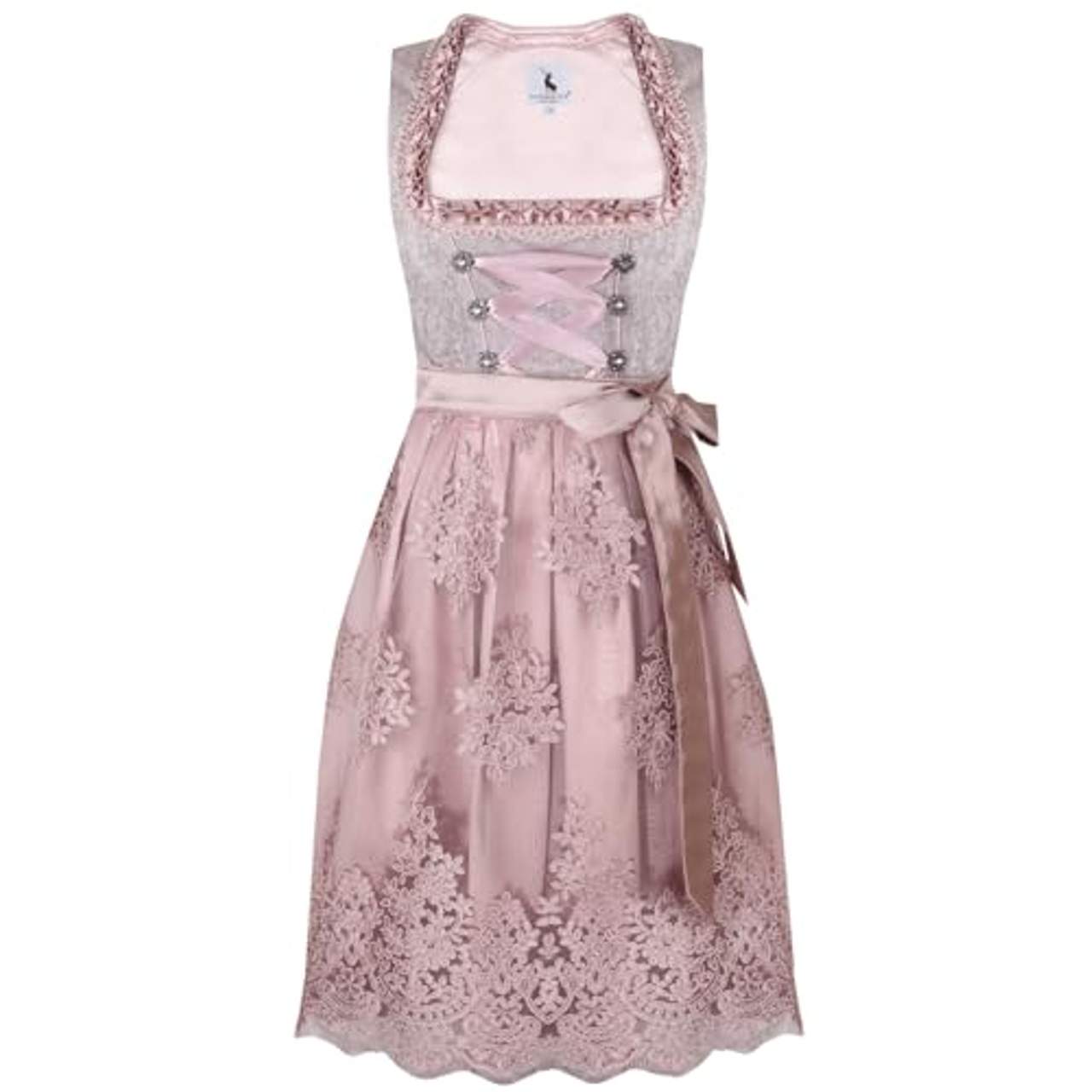 Das Alpenmärchen Midi Dirndl ist ein echter Hingucker in der Trachtenmode. Es kombiniert romantisches Altrosa mit raffinierten Details. Die verschlungene Froschmaulborte und die mit Steinchen verzierten Miederhaken unterstreichen die Eleganz des Dirndls und machen es sowohl stilvoll als auch funktional. Die feine Spitzenschürze sorgt für Raffinesse und schafft ein Gleichgewicht zwischen Tradition und Moderne. Mit einer schmeichelhaften Rocklänge von 60 cm ist dieses Dirndl vielseitig einsetzbar für verschiedene Anlässe. Obwohl ihm eine Bluse fehlt, machen es seine hochwertige Verarbeitung und charmante Ästhetik zu einer Top-Empfehlung für deinen persönlichen Dirndl-Test. Ideal für alle, die modische Trachtenkleidung mit einem Hauch von modernem Charme suchen.
