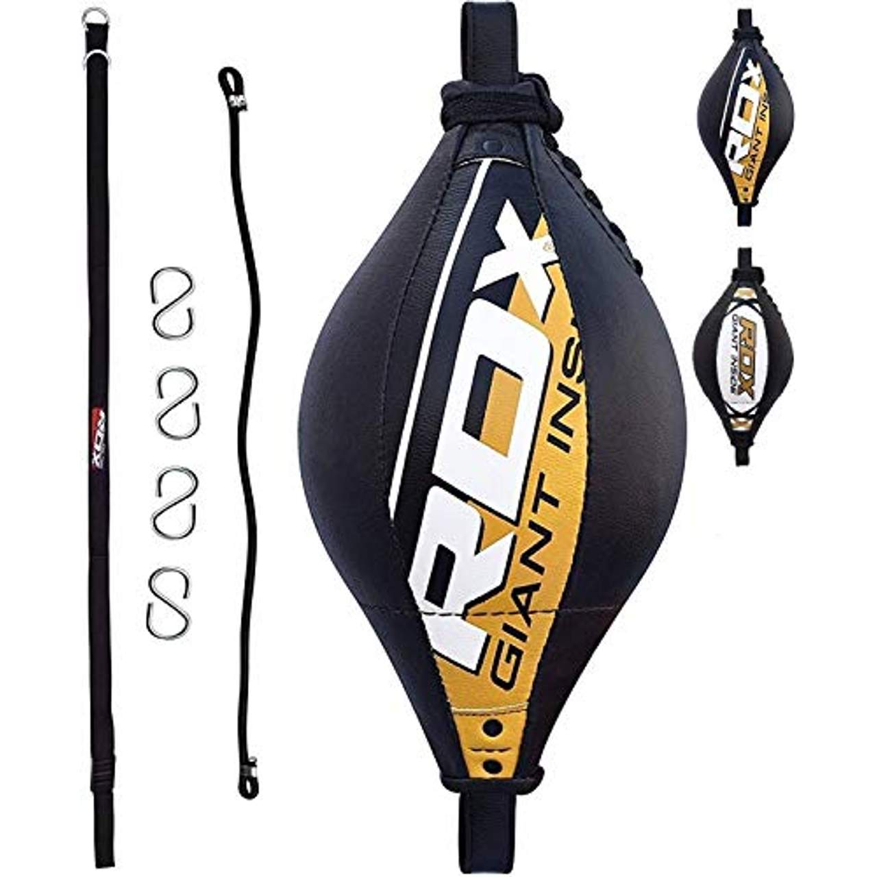 - S-Ring & V-Gravity Technologie: Der RDX Speed Punching Ball wird mit einem Komplettpaket zur Befestigung des doppelseitigen Beutels geliefert, das eine haltbare PVC-Schnalle, vier Metall-S-Ringe und alle notwendigen Befestigungselemente zur einfachen Befestigung des Beutels enthält. Die Basis ist mit exklusiver V-Gravity-Technologie stabilisiert, so dass sie auch nach harten Schlägen aus verschiedenen Winkeln stabil ist.