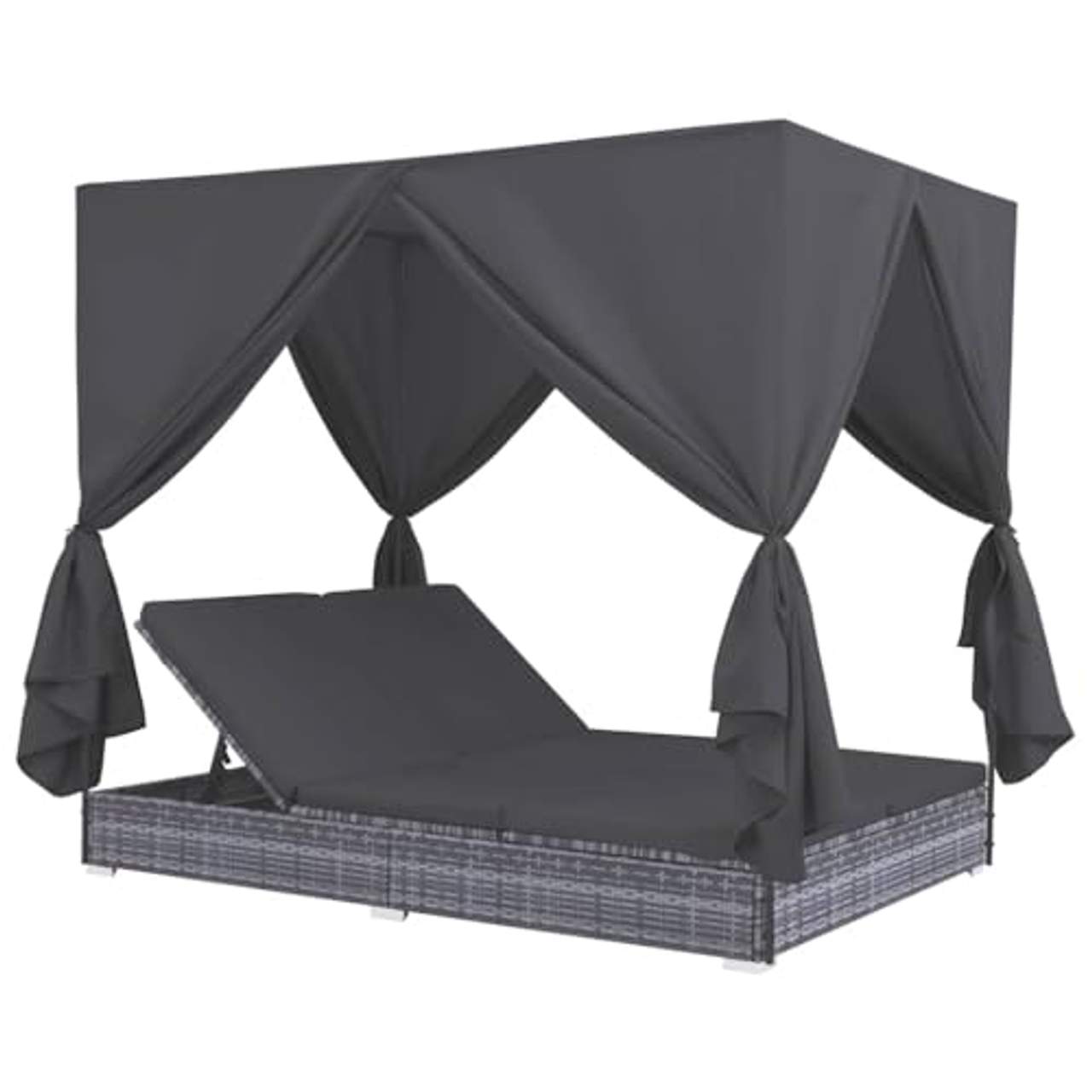 - vidaXL Sonnenliege mit Vorhängen Gartenliege Lounge Doppelliege Relaxliege