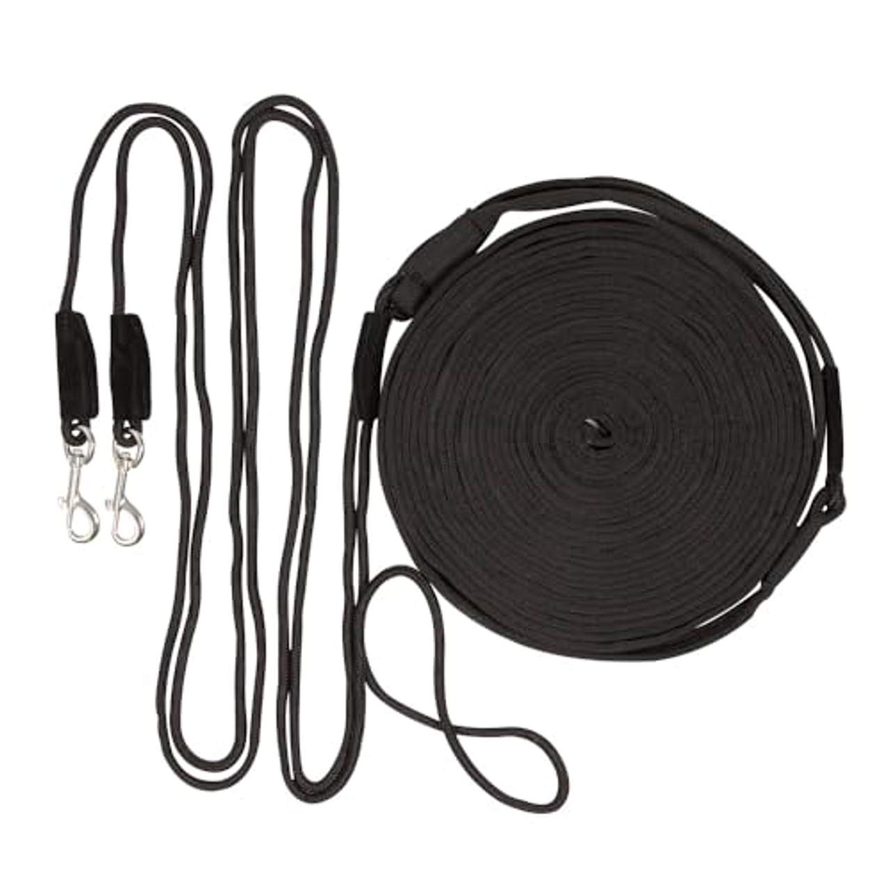 Diese Doppellonge ist vielseitig und kann für verschiedene Übungen verwendet werden. Sie eignet sich besonders gut für die Bodenarbeit, das Longieren und sogar für die Einführung junger Pferde in die Grundkommandos, so dass sie für Trainer mit unterschiedlichen Erfahrungsstufen geeignet ist.