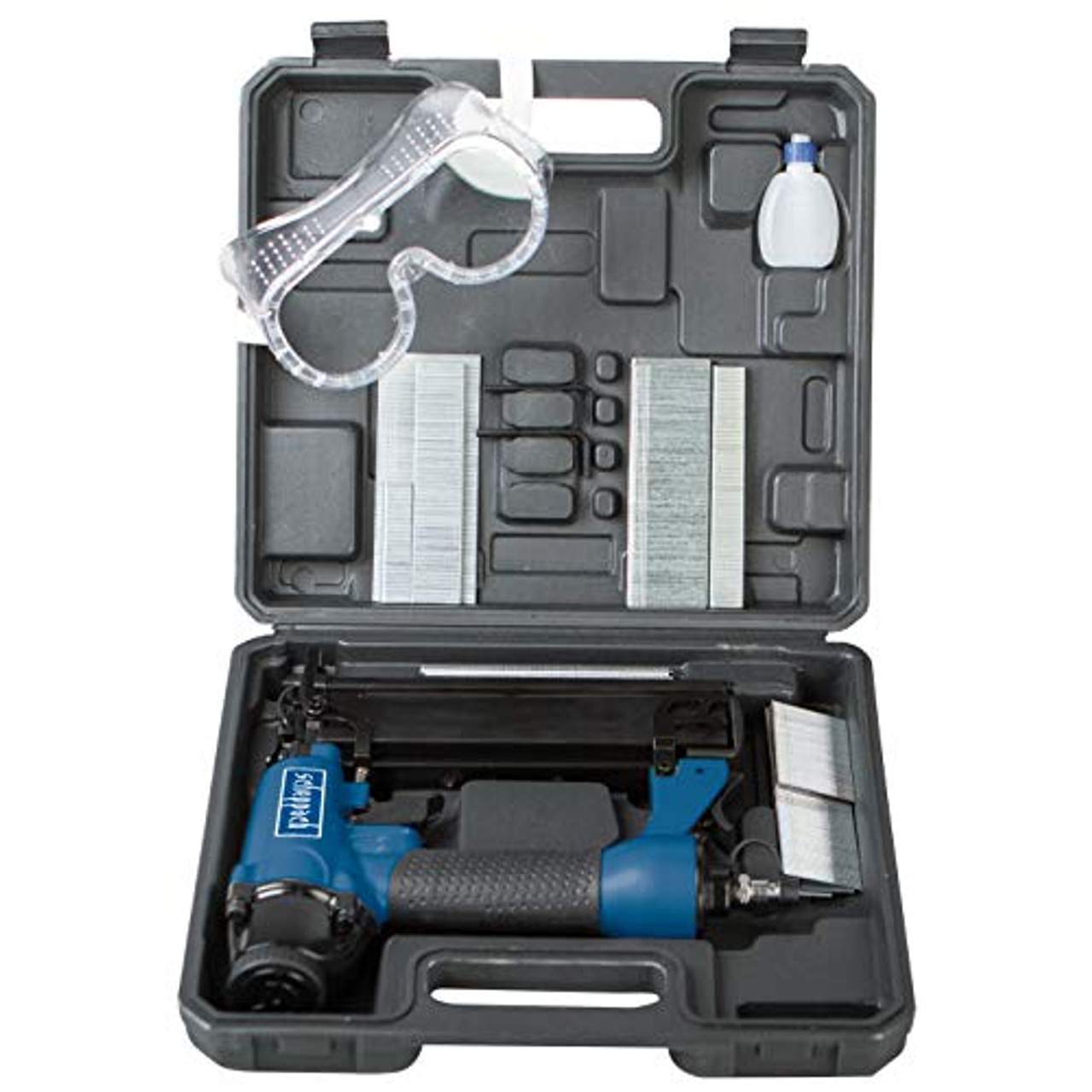 Über Scheppach Druckluftpistole 2in1 Klammer und Nagelpistole