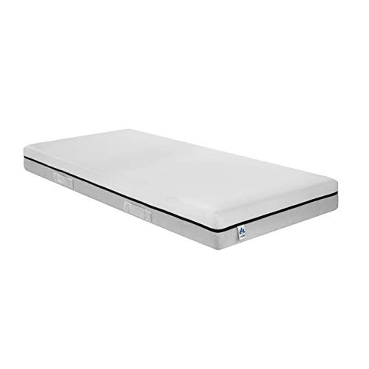 - Hochwertiger Bezug: Die Matratze ist mit einer Oberseite aus hochelastischem Gestrick für eine verbesserte Anpassungsfähigkeit sowie einer Unterseite aus speziellem 3D-Abstandsgewirke für eine verbesserte Abgabe der Körperfeuchtigkeit und ein trockenes Schlafklima ausgestattet.