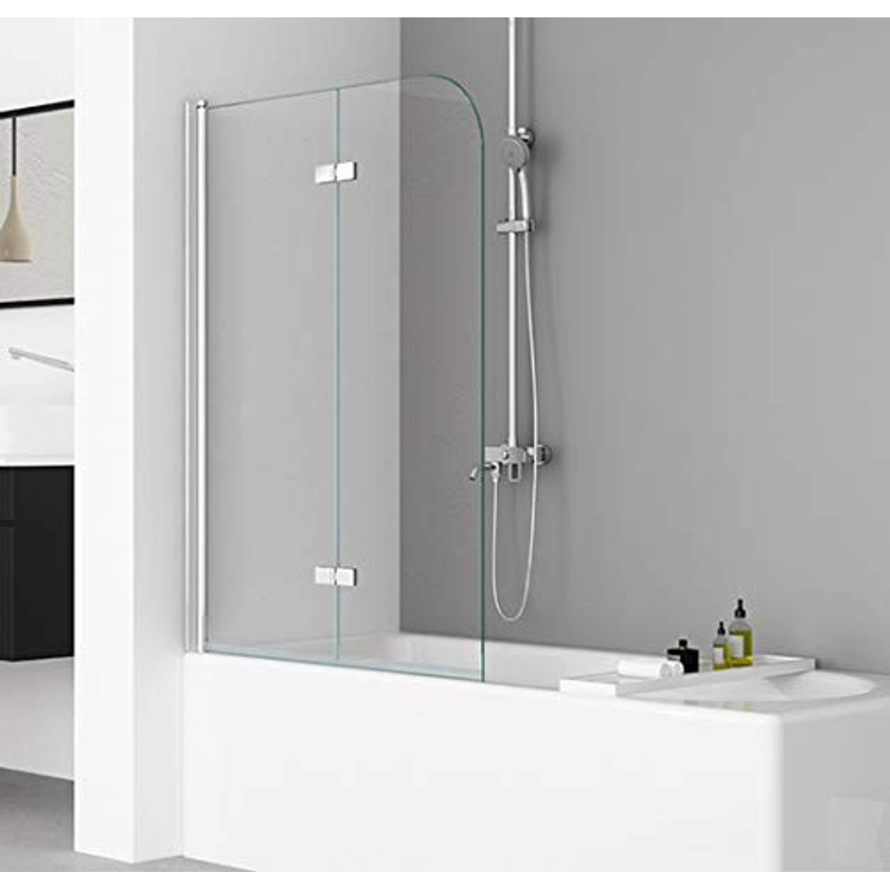 - Flexibler Einsatz: Die Falttür lässt sich nach innen und außen öffnen, ist beidseitig um 180° schwenkbar und kann komplett an die Wand geklappt werden, so dass sie in jedem Bad flexibel eingesetzt werden kann.