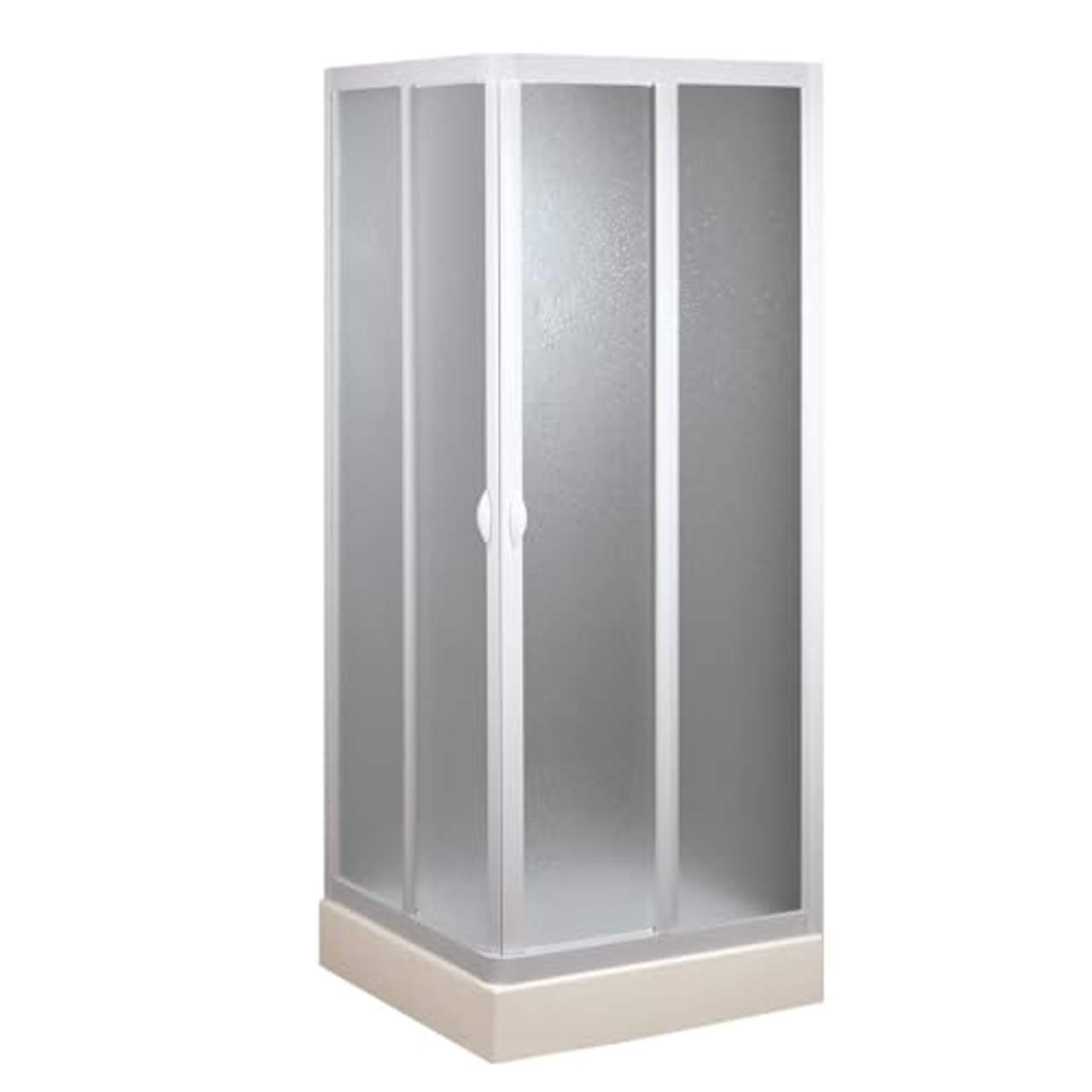 Forte Acryl Duschkabine 80x80 cm VenereDie Venere Duschkabinenserie wurde in PVC entwickelt. Es handelt sich dabei um ein weiteingesetztes Material in der modernen Hauseinrichtung, dank seiner hohen Eigenschaften in der Widerstandsfähigkeit und in der Langlebigkeit. Made in Italy Produkt, das dazu bestimmt ist in wenig Zeit installiert zu werden, um so die Einbaukosten einzusparen.Eigenschaften: Duschkabine 80x80 CM in PVC (Polyvinylchlorid: ein verwertbares, langlebiges und stabiles Material), bestehend aus zwei festen Scheiben und zwei Schiebetüren. 2,2mm Acryl Paneele. Justiermöglichkeit von bis zu 3 cm auf den seitlichen Scheiben und bis auf 5 cm reduzierbar auf der vorderen Scheibe (80x80 CM bis auf 75x75 CM einstellbar) li> Türöffnung: 45 CM. Eckige Öffnung basierend auf Gleitscheiben mit Türrollen. Magnet-Verschluss. Das Produkt ist in der Farbe WEIß erhältlich. Paneel mit Blasenendverarbeitung wie in der Vergrösserung im Bild, nich durchsichtig Höhe 185 cm. Die Duschabtrennung wurde so entwickelt, dass sie