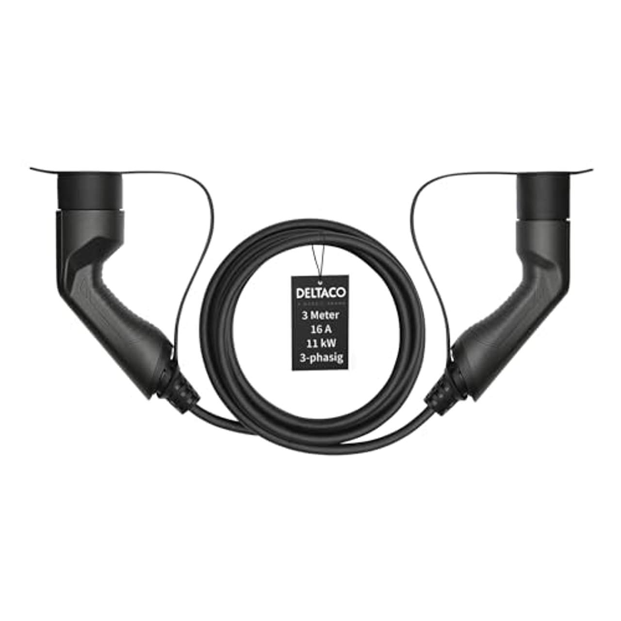 Deltaco EV-Ladekabel für E-Autos und Hybrid Fahrzeuge (3 m)Das 3 Meter lange Deltaco EV-3213 Ladekabel kommt mit einer maximalen Ladeleistung von 11 kW bei 16 A. Das 3-phasige Ladekabel ist ausgestattet mit einem Typ 2 auf Typ 2 Anschluss, welcher Standard in der EU ist. Mit diesem Kabel können sie also an den meisten Ladesäulen im europäischen Raum laden.Durch die IP 66 Zertifizierung ist das Kabel geschützt vor Staub und starkem Strahlwasser und eignet sich damit Ideal zum Laden ihres E-Autos bei Wind und Wetter.Das Ladekabel ist passend für alle modernen Fahrzeuge mit Typ 2 Anschluss u. a. AUDI, BMW, Hyundai, KIA, Mercedes, Porsche, Seat, Skoda, Tesla, Volkswagen und Volvo. Die Anschlüsse des Ladekabels sind versilbert, was einen guten Kontakt garantiert. Das 3-phasige Kabel besteht aus TPE Material, welches eine gute Beständigkeit gegenüber Öl und UV-Licht bietet.Das Ladekabel wird durch bidirektionale Kommunikation überwacht.Das bedeutet, dass ein Austausch zwischen dem Fahrzeug und dem Ladegerät stattfindet. Vor dem Start des Ladevorgangs wird ein Selbsttest durchgeführt, der sicherstellt, dass das Kabel ordnungsgemäß angeschlossen ist und das Auto aufgeladen werden kann.Des Weiteren sperrt eine mechanische Verriegelung das Ladekabel, dies Schütz vor Diebstahl und Unbefugten benutzen des Kabels.Trennen sie das Ladekabel nach dem Ladevorgang zuerst an dem Typ 2 Anschluss an ihrem Fahrzeug. Das Kabel darf nicht repariert oder gespleißt werden, da dies die Sicherheit und Funktion beeinträchtigen kann.Features:3 Meter langes Ladekabel zum Laden von E-AutosSicherheiit über Typ 2 auf Typ 2 Anschluss (IEC)16 Ampere (11 kW) maximale LadeleistungKlassifizierung: IP66 Schutz vor Staub und starkem StrahlwasserPassend für die meisten modernen, elektrischen Fahrzeugen in Europa