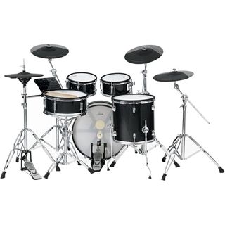 Was die physischen Komponenten angeht, so ist das TD-17KVX mit zwei Crash-Becken und einem VH-10 Hi-Hat-Pad ausgestattet. Das VH-10 bietet einen natürlichen Rückstoß und vertraute Vibrationseigenschaften, die denen einer akustischen Hi-Hat ähneln. Sie kann auf einem separat erhältlichen akustischen Hi-Hat-Ständer montiert werden, um die Authentizität zu erhöhen.