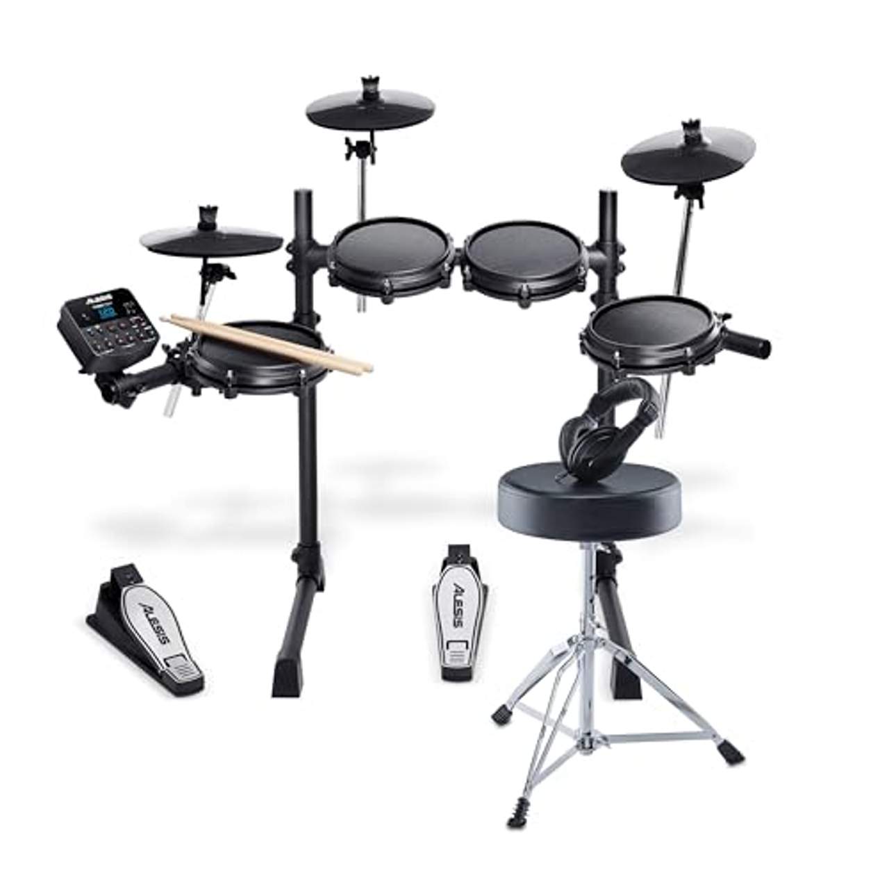 Das Alesis Drums Turbo Mesh Kit Bundle wird mit einem umfangreichen Zubehörpaket geliefert, damit du alles hast, was du brauchst, um sofort mit dem Schlagzeugspielen zu beginnen. Das Paket enthält einen zusammenklappbaren Hocker für bequemes Spielen, Drumsticks für den sofortigen Einsatz, alle notwendigen Kabel und ein Netzteil für den Anschluss des Schlagzeugs sowie Kopfhörer für private Übungsstunden.