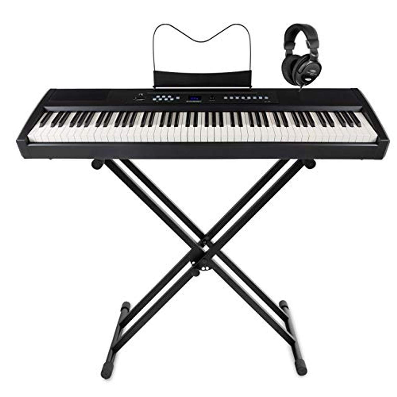 McGrey SP-100 Piano Stage Set88 gewichtete Tasten mit Hammermechanik und einstellbarer Anschlagsdynamik, Max. Polyphonie: 64, 8 Voices, Split, Layer, Metronom, Hall, Chorus, Sustain-Pedal, Aufnahmefunktion, Kopfhöreranschluss, Stage Set inkl. X-Keyboardständer & Kopfhörer,