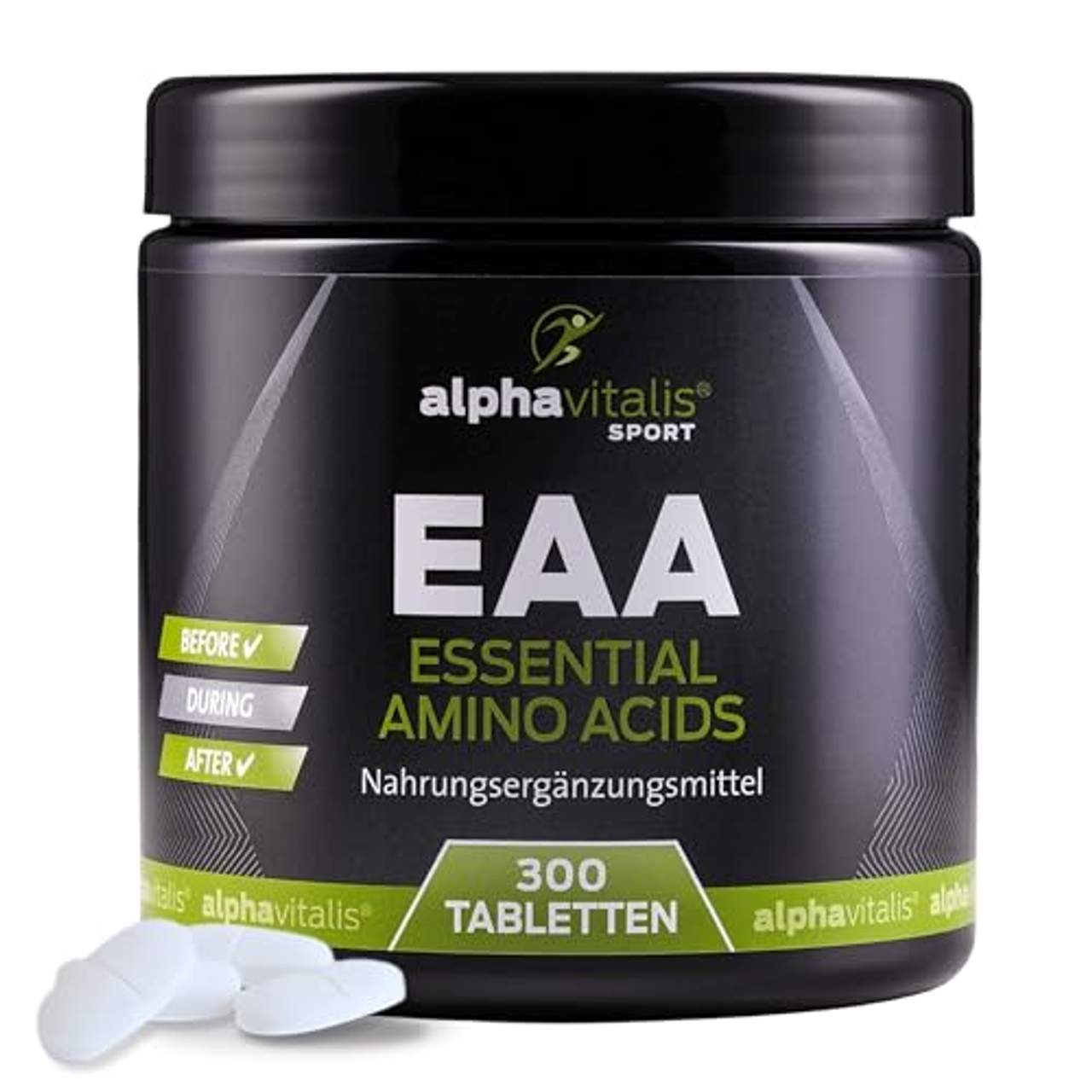 alphavitalis EAA Tabletten veganEAA Tabletten von alphavitalis SPORT bieten eine vollständige Versorgung mit allen 8 essentiellen Aminosäuren; einschließlich der BCAAs Leucin, Isoleucin und Valin, sowie L-Lysin. Die hochwertigen, freien Aminosäuren in unserem Produkt stammen aus Maisfermentation und sind daher vegan. Dies ermöglicht eine flexible Anwendung als Pre- und Post-Workout-Supplement. Unsere Tabletten werden mit mikrokristalliner Cellulose formuliert, damit sie leicht zu schlucken sind, während unsere Kapseln den Vorteil haben, den bitteren Geschmack zu minimieren.Key-Facts: Komplette EAA-Versorgung: Enthält alle 8 essentiellen Aminosäuren im sog. Humancode Hochwertige, vegane Formulierung: Die Aminosäuren werden aus Mais fermentiert, ohne tierische Bestandteile, ideal für vegane Ernährung und verschiedene Ernährungsansätze. Flexibel einsetzbar: Geeignet als Pre- und Post-Workout-Supplement Praktische Einnahme: Portioniere deinen Bedarf ganz einfach und flexibel