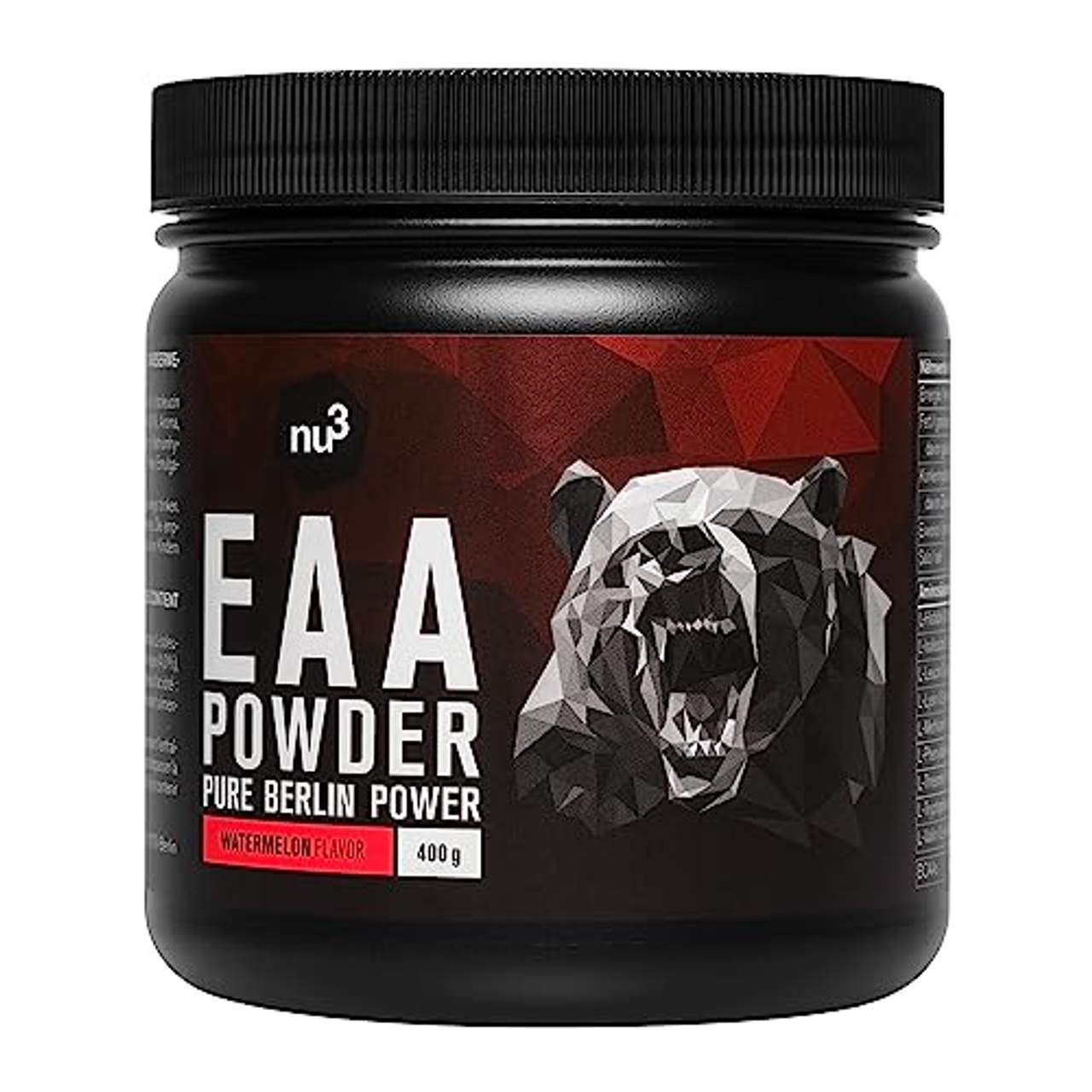 - Vorteile für den Muskelaufbau: Der Verzehr des nu3 EAA Powder vor oder während des Trainings kann Ihrem Körper helfen, effizienter Muskeln aufzubauen.