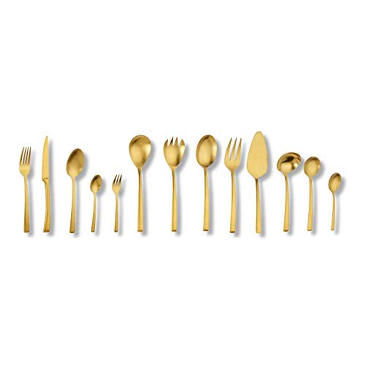 - Komplettes Set für 12 Personen: Das "Echtwerk Tafelbesteck "Avelino" PVD gold mattiert" wird mit einem kompletten Besteckset für bis zu 12 Personen geliefert. Das bedeutet, dass du alles hast, was du für ein formelles Abendessen oder eine Versammlung brauchst, einschließlich 12 Messern, 12 Gabeln, 12 Löffeln, 12 Teelöffeln und sogar zusätzlichen Servierutensilien wie Servierlöffel, Serviergabel, Saucenlöffel, Kuchenservierer, Zuckerlöffel, Salatbesteck (2 Stück) und Suppenschüssel-Löffel. Mit diesem umfangreichen Set kannst du die Bedürfnisse deiner Gäste erfüllen, ohne dass du dir Sorgen machen musst, dass dir die Utensilien ausgehen.
