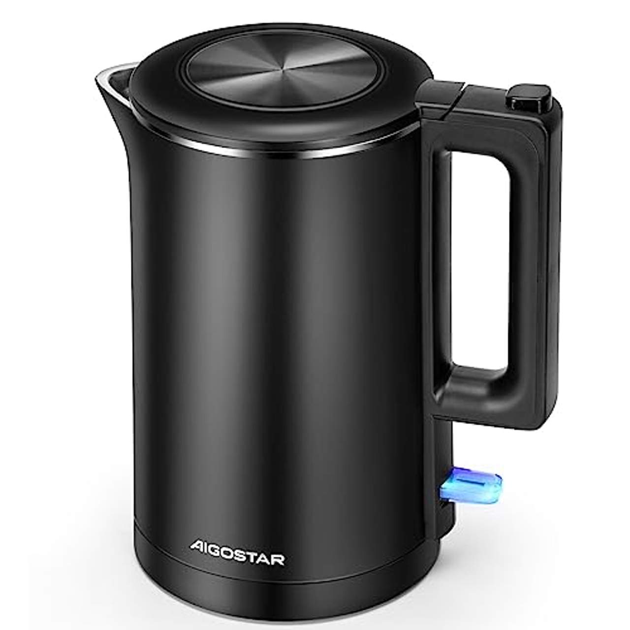 Der Aigostar Edelstahl Wasserkocher verfügt über ein doppelwandiges Design mit Cool Touch, um Verbrühungen zu verhindern und das Wasser länger heiß zu halten. Außerdem verfügt er über einen ergonomischen Griff für einen kühleren und sichereren Halt.