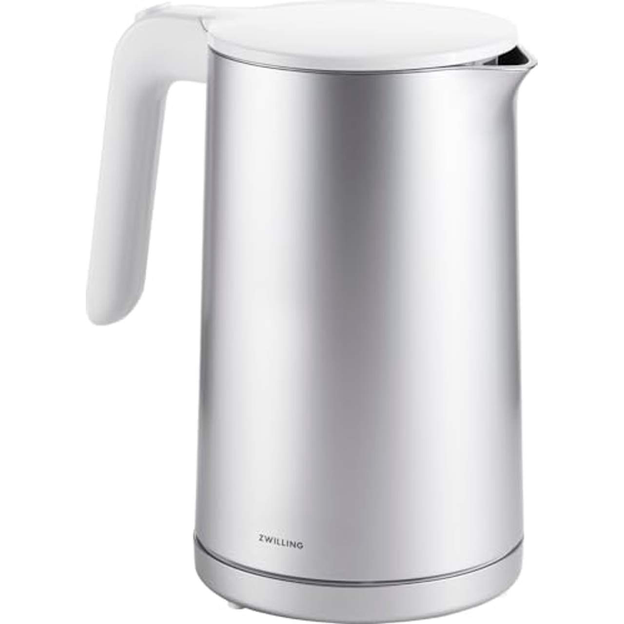 Zwilling Enfinigy WasserkocherEin Designerstück zum Anfassen: der hochwertige Wasserkocher im modernen ZWILLING Design mit Wärmeisolierung. Das doppelwandige Gehäuse hält das Wasser des 1850-Watt-Kochers im Inneren länger warm und sorgt gleichzeitig für eine kühle Außenwand. Der passgenaue Filter verschließt zudem den Ausguss bei geschlossenem Deckel so treten auch beim versehentlichen Umstoßen des Kochers nur sehr geringe Mengen Wasser aus.Zusätzliche Sicherheit bieten der integrierte Trockengeh- und Überhitzungsschutz, denn die automatische Abschaltung verhindert, dass der Wasserkocher trocken läuft und das Heizelement beschädigt wird. Auch beim Herunternehmen des Behälters von der Basisstation wird der Kocher automatisch abgeschaltet., Doppelwandgehäuse speichert die Temperatur im Inneren länger und sorgt für eine kühle Außenwand, nahtloser Edelstahlbehälter für einfache, rückstandslose Reinigung, Kalkfilter teilweise aus Edelstahl für besseren Geschmack und weniger Kalkablagerungen in Tee und Kaffee, integrierte Kabelaufwicklung zum komfortablen Verstauen, entwickelt von ZWILLING in Deutschland, designt in Mailand, Italien, von Matteo Thun & Antonio Rodriguez, sanftes Öffnen auf Knopfdruck, ONOFF Knopf mit LED-Beleuchtung