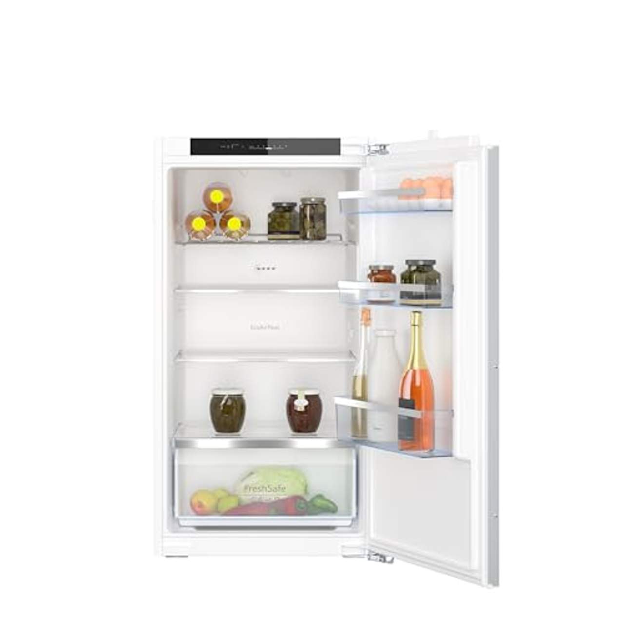 Neff KI1312FE0 Einbaukühlschrank N50 EEK EFlexible Lagermöglichkeiten für frische Lebensmittel.Obst und Gemüse wünschen sich einen eigenen Platz im Kühlschrank. Darum bietet Ihnen die Fresh Safe-Schublade den optimalen Platz, an dem Sie frische Lebensmittel aufbewahren und im Handumdrehen finden können.Höhenverstellbare BödenMit den höhenverstellbaren Böden schaffen Sie genau den Platz, den Ihre Zutaten jetzt brauchen - immer wieder.Frische Luft für ein besseres Kühlergebnis.Sie wählen Ihre Lebensmittel liebevoll aus? Unser Eco Air Flow-System behandelt sie anschließend genauso liebevoll. Dazu verteilt es die Luft im Kühlschrank gleichmäßig, um für eine konstante Temperatur zu sorgen.So bleibt alles knackig-köstlich-frisch.Ihr Kühlschrankinnenraum im neuen Licht.Die flachen, langlebigen LED-Leuchten erhellen Ihren Kühlschrank von oben bis unten und vorne bis hinten. Dabei sehen Sie nicht nur alles, sondern sparen auch Strom, weil sich LED-Leuchten nicht erwärmen.Da strahlt nicht nur ihr Kühlschrank!SicherheitsglasSie können gar nicht genug Leckereien zu Hause haben? Für unser Sicherheitsglas ist das ein Klacks - kühlen Sie auch große und schwere Zutaten ein, ohne sich auch nur einen Gedanken um das Gewicht auf den Sicherheitsglassböden zu machen.SuperkühlenSie konnten auf dem Wochenmarkt nicht widerstehen? Bei großen Einkäufen ist es besonders praktisch, den Kühlschrank kurzfristig auf +2 °C herunter zu kühlen. So ist der Kühlschrank bereit für die neuen Zutaten oder auf die Schnelle für kühle Getränke bei spontanem Besuch. Mit der Home Connect App können Sie Ihren Kühlschrank schon unterwegs auf die richtige Temperatur einstellen und mit Superkühlen hat er genau die richtige Temperatur, bis Sie zu Hause sind.