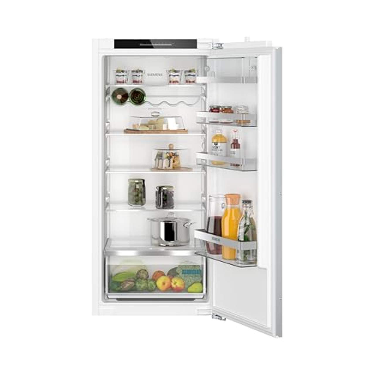 Siemens KI41RADD1 Einbau-Kühlschrank iQ500hyperFresh - Mehr Platz für alles Frische. In der hyperFresh-Schublade haben Obst und Gemüse mehr Platz und die richtige Luftfeuchtigkeit. So bleibt alles knackig und lecker – und das ist nicht nur gut fürs Aroma, sondern auch für Vitamine und Nährstoffe LED-Beleuchtung - Alles im Kühlschrank auf einen Blick. Die eingebaute LED-Beleuchtung sorgt für eine gleichmäßige Ausleuchtung, sodass Sie direkt sehen, was Sie alles im Kühlschrank lagern. Und weil sich die LEDs vorne im Kühlschrank befinden, werden sie durch die Lebensmittel im Inneren auch nicht verdunkelt.Ein weiterer cleverer Aspekt: Die LEDs sind langlebig und energieeffizient. superCooling - Schnelles Kühlen von Lebensmitteln. Mit superCooling können Sie die Temperatur Ihres Kühlschranks für eine eingestellte Zeit senken, um frische Lebensmittel schnell zu kühlen. Damit wird ein unerwünschter Temperaturanstieg der bereits gekühlten Lebensmittel verhindert. autoAirflow - Perfekte Luftzirkulation. Das autoAirflow-System verteilt die Luft im Kühlschrank gleichmäßig und sorgt damit für eine konstante Temperatur auf allen Ebenen. Ihre Lebensmittel kühlen schneller und bleiben länger lecker und frisch. softClosing-Tür - Immer fest geschlossen. Mit einer softClosing-Tür ist Ihr Kühl- oder Gefrierschrank stets ordnungsgemäß und vollständig geschlossen. Außerdem ist eine Türdämpfung in allen Flachscharnieren integriert. So lassen sich selbst stark beladene Türen leicht und sicher schließen.bottleRack - Die optimale Aufbewahrung für Flaschen. Flaschen brauchen ihren eigenen Platz im Kühlschrank. Unser bottleRack ist die perfekte Lösung: Ob große oder kleine Flaschen oder sogar Dosen – in den optimal passenden Einzelregalen können Sie sie sicher, ohne lästiges „Rattern“ und immer in Reichweite aufbewahren. safetyGlas-Ablagen - Bruchsicher und reinigungsfreundlich. Alle Glasablagen bestehen aus extrastarkem, reinigungsfreundlichem Sicherheitsglas. Fällt mal etwas um, wird die verschüttete Flüssigkeit eingedämmt und läuft nicht durch den gesamten Kühlraum.