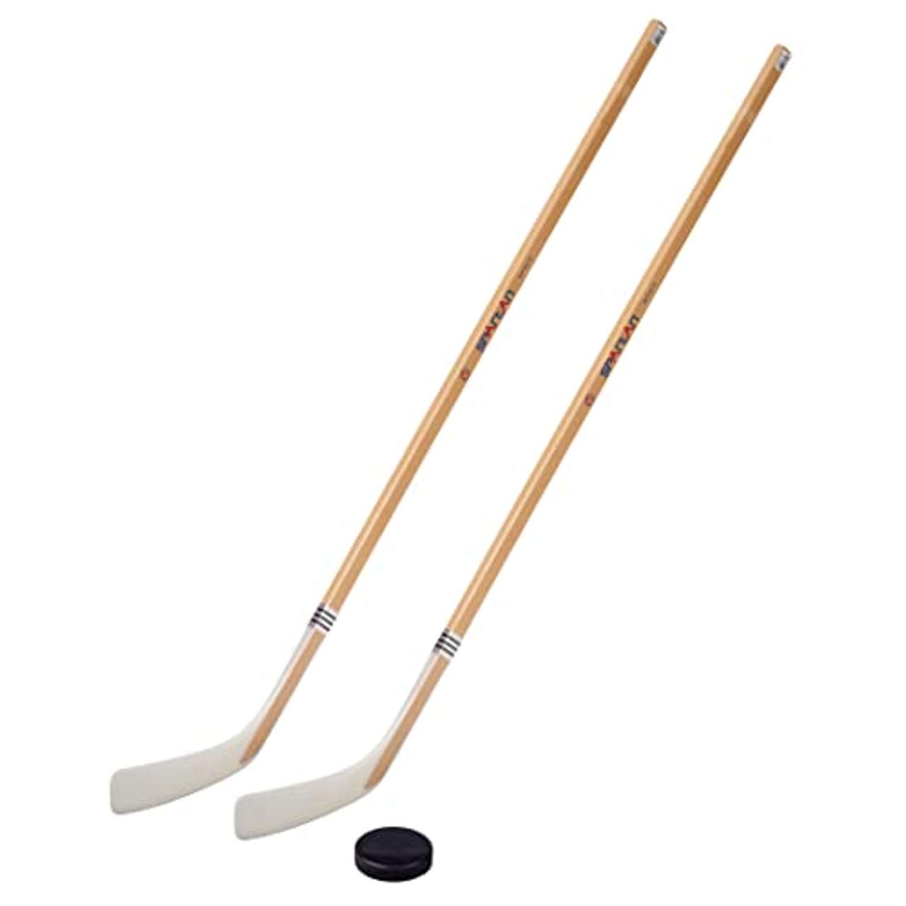 Neben zwei Schlägern enthält das Set auch einen Junior-Puck, der kleiner und leichter ist als normale Pucks, so dass die Kinder ihn leichter handhaben und kontrollieren können.