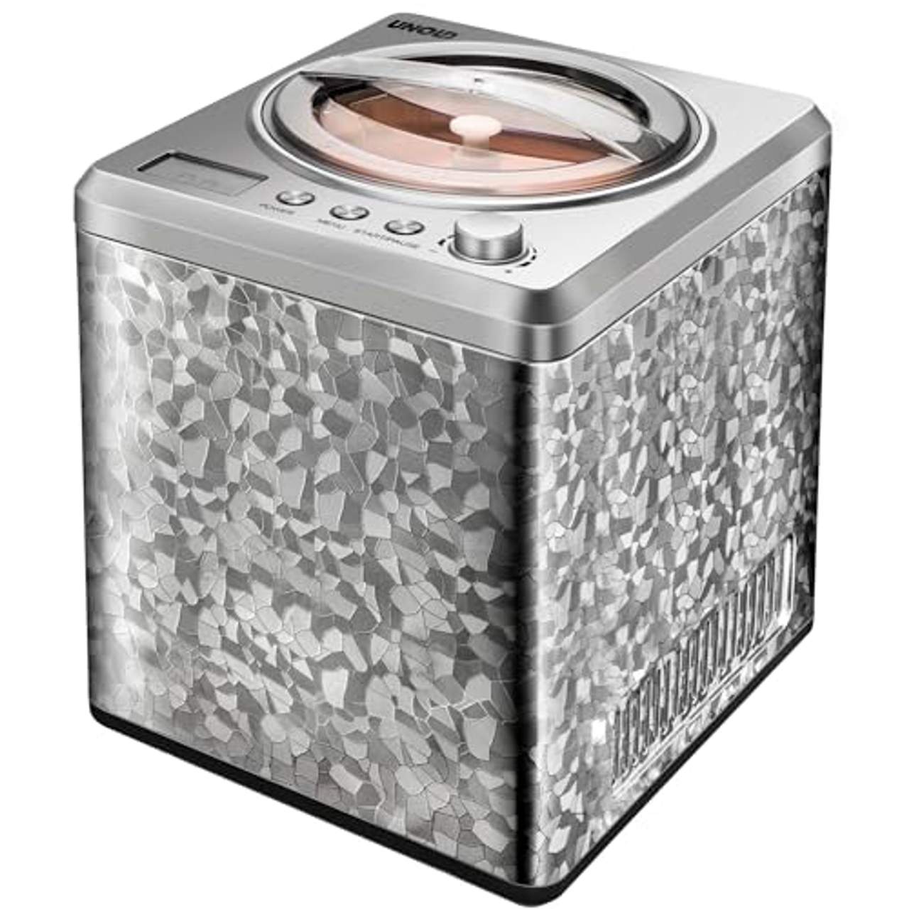 Unold 48870 Eismaschine 2 litersLeckere Eiszeit das ganze Jahr über Mit der professionellen Eismaschine für ca. 2 Liter Volumen lässt sich köstliche Sahneeiscreme in nur ca. 30 Minuten (bei vorgekühlten Zutaten) zaubern. Die Maschine ist auch sehr gut für veganes, laktosefreies und steviahaltiges Eis geeignet. Der vollautomatische, selbstkühlende Kompressor gewährleistet eine kontinuierliche Kälteerzeugung in einem Gefrierbereich bis ca. -35° C.Der robuste Motor ist für den Dauerbetrieb geeignet. Die EISMASCHINE Profi mit elegantem und robustem Edelstahlgehäuse hat ein großes LCD-Display mit Anzeige der Restlaufzeit. Der digitale Timer ist von 5 bis 60 Minuten einstellbar. Die Eismaschine hat 3 Programme mit Zeitwahl und einfach zu bedienende Tasten. Der Edelstahl-Eisbehälter lässt sich herausnehmen und dadurch einfach reinigen.