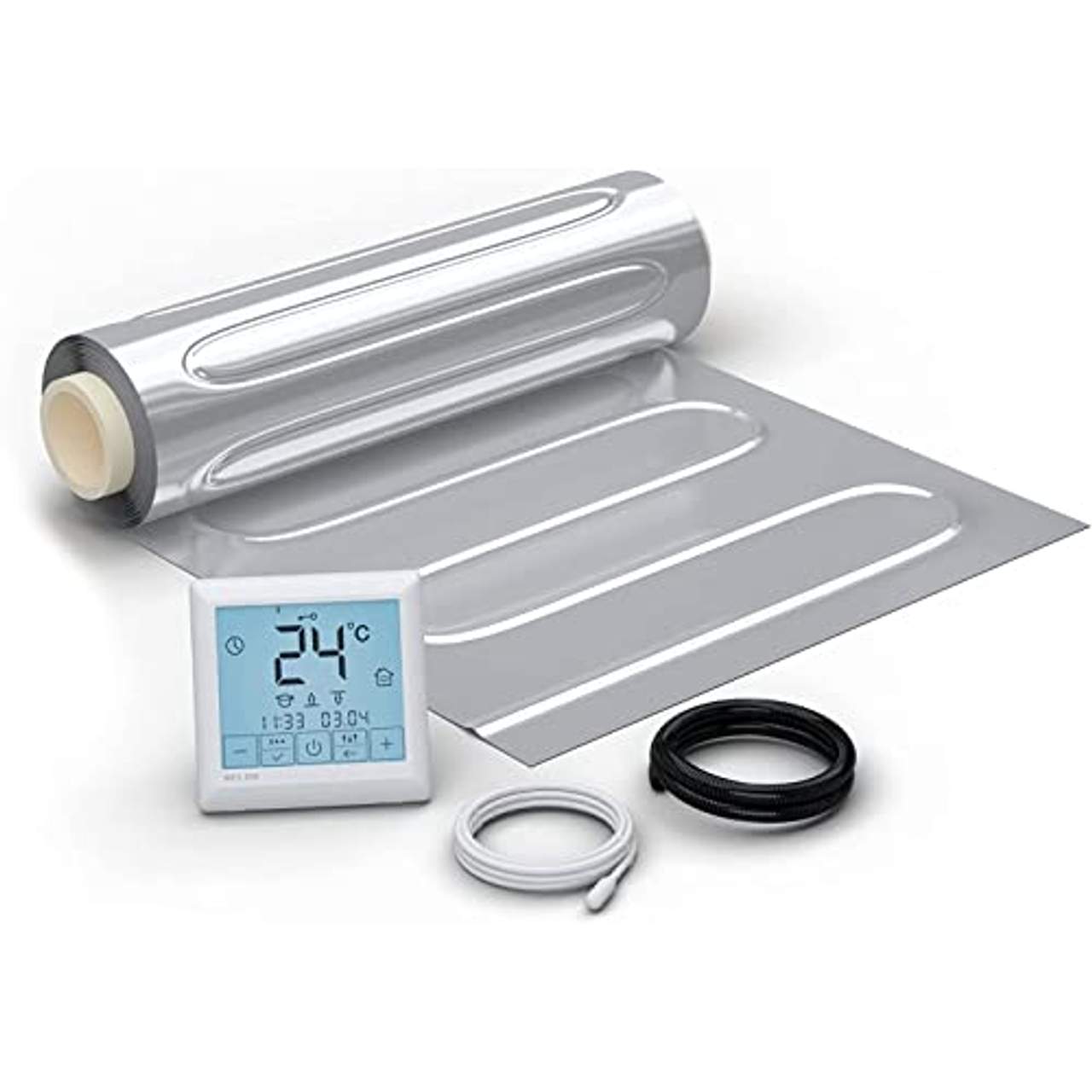 Bodenheizung 24 Elektrische FußbodenheizungAlu Heizmatten-Set AZ-150 mit Thermostat MCS 350 WlanElektrische Fußbodenheizung Set für Innenräume mit Heizmatte Thermostat und Zubehör. Kompatibel für Laminat Parkett. Durch die oberflächennahe Installation des Heizungssystems im Boden wird die Wärme großflächig und gleichmäßig nach oben geleitet und verteilt.Lieferumfang:Alu-Heizmatte 150 W/m²Thermostat MCS 350 inkl. TemperatursensorKunststoffwellrohrTouch Thermostat MCS 350 WIFIRegeln Sie Ihre Fußbodenheizung ganz bequem von Ihrem Smartphone aus.digitaler programmierbarer Temperaturreglerbedienungsfreundliches TouchdisplayKostenlose iOS- und Android-AppFenster-Offen-Erkennung spart EnergieErP-konform gemäß Ökodesign-RichtlinieBodentemperaturfühler im Lieferumfang enthaltenDer digitale programmierbare WiFi-Thermostat MCS350 dient zur Regelung von elektrischen Heizsystemen in Innenräumen und eignet sich auch zur Steuerung wassergeführter Fußbodenheizungen unter bestimmten Voraussetzungen.Der MCS350 Tuya ermöglicht eine bequeme