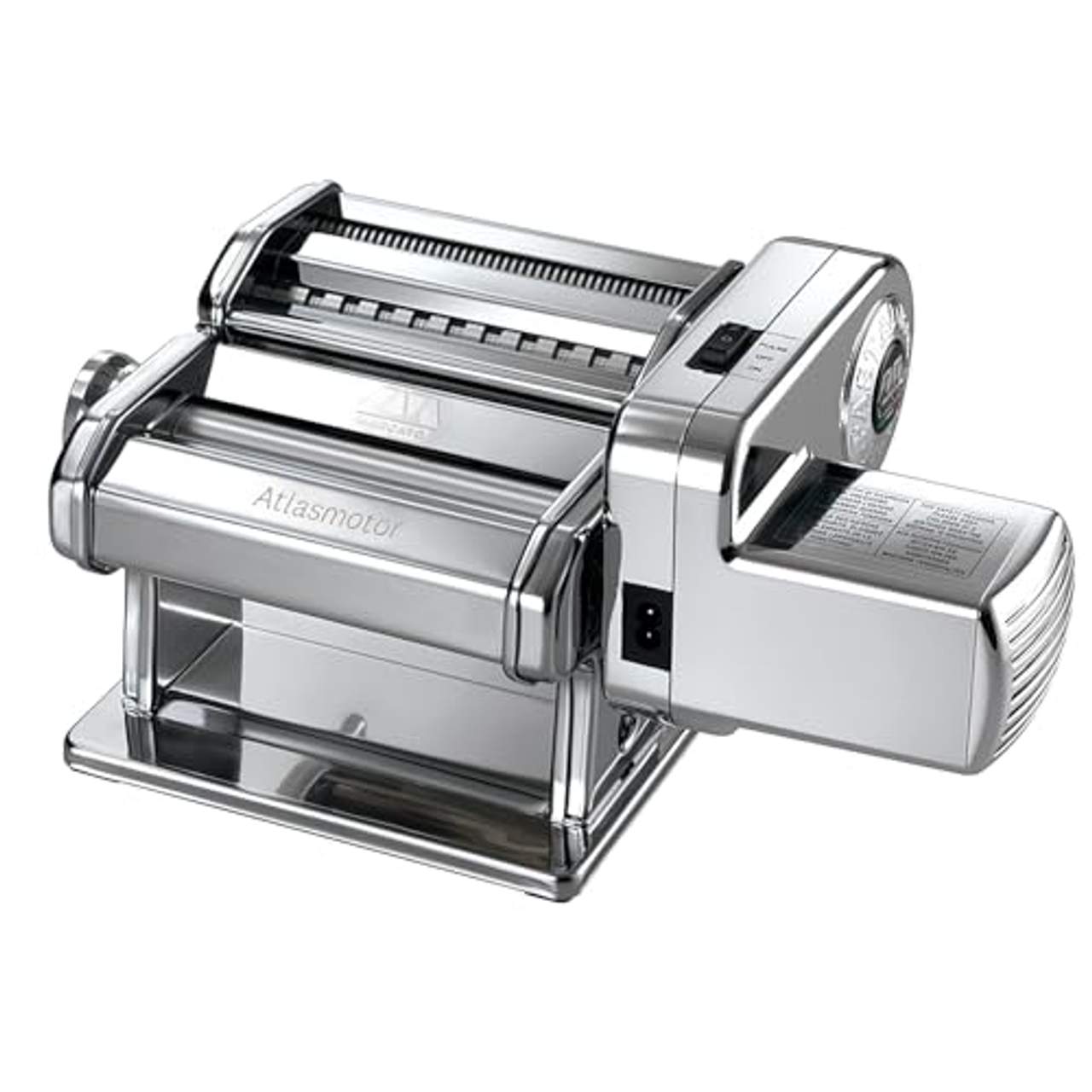 Marcato 08 0155 12 00 Nudelmaschine AtlasmotorDie Küchenprofi Nudelmaschine Atlas wird von Marcato in Italien gefertigt und ist die erfolgreichste Nudelmaschine der Welt. Zur Standardausstattung der Nudelmaschine gehören 2 Walzen für Lasagne, Fettucini, Taglierini, allerdings sind noch viele weitere Walzen separat erhältlich, und mit Hilfe des eingebauten Motors verwandelt sich die handbetriebene Nudelmaschine sofort in eine Leistungsstarke Küchenmaschine.