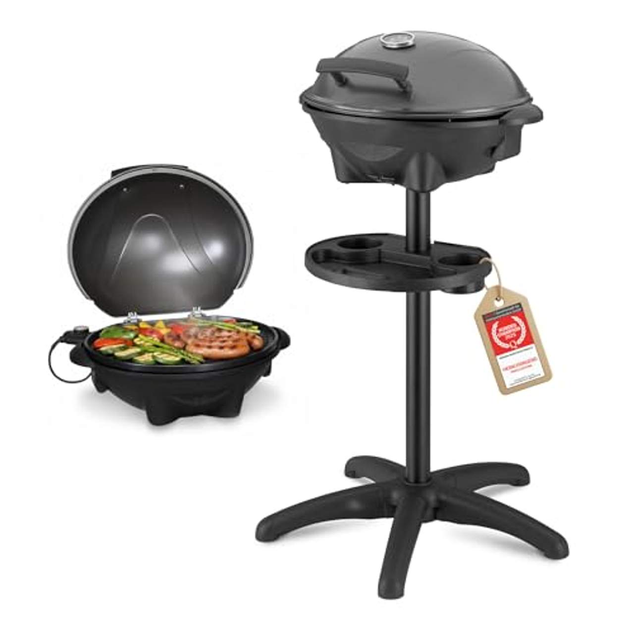 TZS First Austria 2in1 Elektrogrill & Tischgrill ElektrischTZS First Austria Standgriller 2400 WattDer Balkongrill hat eine im Standfuß integrierte Ablagefläche, auf der bequem und platzsparend das Grillzubehör, Grillgut oder Getränke abgestellt werden können. Das integrierte Thermostat hilft Ihnen außerdem, das perfekte Grillergebnis zu erzielen.Der TZS Elektrogrill lässt sich kinderleicht vom Standgrill zum Tischgrill umfunktionieren.Dazu den Tischgrill einfach vom Gestell heben, auf den gewünschten Platz stellen &, loslegen - in nur 3 Min einsatzbereit!Der 2400-Watt-Griller bietet nützliche Extras: stabiles Gestell, abnehmbare Antihaftplatte (aus Aluguss mit glatter und geriffelter Oberfläche), Abdeckhaube, Abtropfschale, Extra Ablage, stufenlose Temperatureinstellung, Thermometer2400 Watt LeistungExtra AblageflächeInklusive ThermometerInklusive AbdeckhaubeTechnische Details:Betriebsspannung [V]: 230Leistungsaufnahme [W]: 2400Material: Kunststoff/MetallMaße [cm]: B 65 x H 98 x T 65Maße Grillplatte [cm]: 44 x 33,5 cmGewicht [kg]: 7,9Kabellänge [cm]: 285Farbe: Grau/SchwarzLieferumfang:1x Standgriller von TZS First AustriaTZS First Austria steht seit über 25 Jahren für Qualität, Zuverlässigkeit und Innovation. Entdecken Sie eine Vielzahl an Qualitätsprodukten für den Haushalt, die Ihnen den Alltag erleichtern. Mit modernen attraktiven Designs verleihen Sie Ihrem Zuhause einen besonderen Touch – und das stilvoll und erschwinglich.