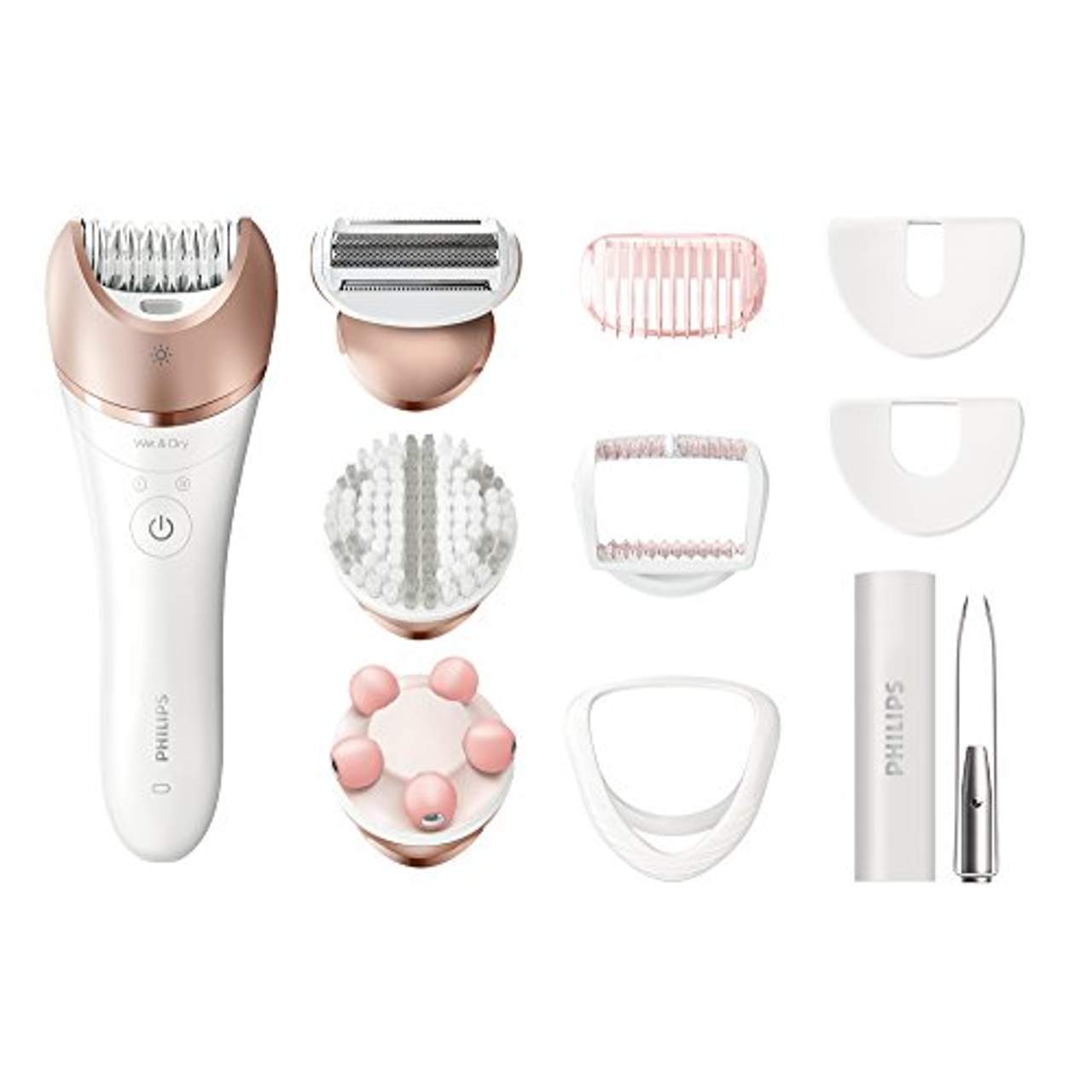 - Umfassendes Set: Dieser Epilierer wird mit einem umfassenden Set geliefert, das einen Epilierer mit Massagekopf, eine Reinigungs- und Peelingbürste, einen Hautstraffer, einen Rasierkopf, einen Massage- und Kammaufsatz, eine luxuriöse Pinzette, einen Aufsatz für das Gesicht und empfindliche Körperbereiche, eine Tasche und weiteres Zubehör enthält.